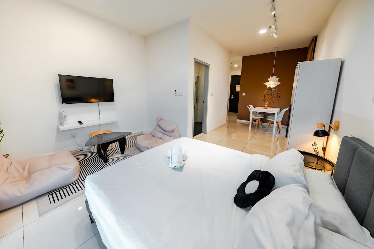 Bienvenido a nuestro estudio en la maravillosa ubicación de Subang Jaya. Nuestra acogedora unidad tiene todo lo necesario para una estancia cómoda, incluido un televisor LED de 60 pulgadas con Netflix/YouTube/TV box con las últimas películas y más de 100 canales de todo el mundo. Relájate, desconecta y disfruta de una cocina ligera con nuestros servicios de cocina totalmente equipados. La zona es muy accesible a LDP, NKVE, carretera federal. La estación de tren ligero está a tiro de piedra. Además, debajo de la estación hay un gran centro comercial para todas tus necesidades de compras.