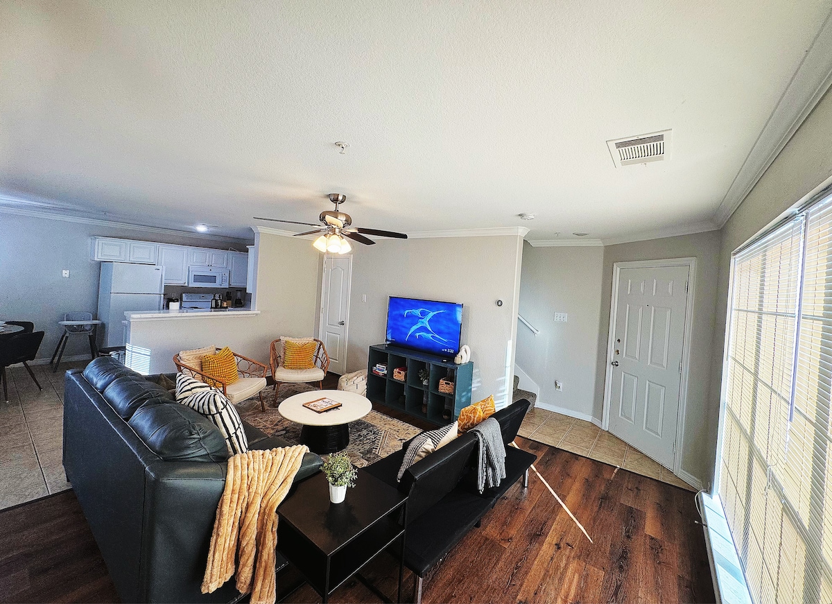 Disfruta de una estancia en una casa de estilo rancho con un toque moderno, ubicada en un acre de hermosos árboles altos y sombreados, ¡con piscina! La casa cuenta con un gran solárium con una segunda sala de estar y mesa de ping pong. Todas las habitaciones tienen ropa de cama de lujo y armarios. El dormitorio principal tiene una cama tamaño king, un armario grande y un baño con ducha a ras de suelo. Dos habitaciones tienen camas tamaño queen. ¡Baño completo para huéspedes equipado con bañera para relajarse después de un día de actividades! Acceso completo a la casa con mucho espacio de estacionamiento y también para vehículos recreativos/barcos.