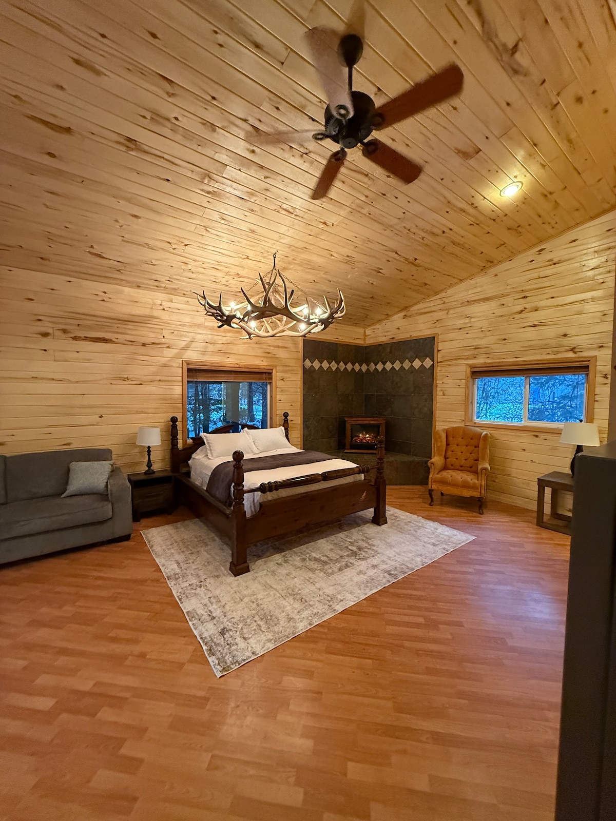 Acogedora cabaña de nueva construcción en el mundialmente famoso lago Kenai. Disfrutarás de paisajes mágicos que incluyen las montañas Chugach, el lago Kenai y el glaciar Snow River. La cabaña cuenta con una cocina de tamaño completo y bien equipada. El dormitorio tiene un armario completo, lavadora/secadora y cama tamaño king. El baño completo tiene una ducha amplia. El sofá cama tamaño queen ofrece un sueño cómodo para huéspedes adicionales (perfecto para niños o adolescentes). La terraza de la cabaña se completa con asientos y parrilla de propano.