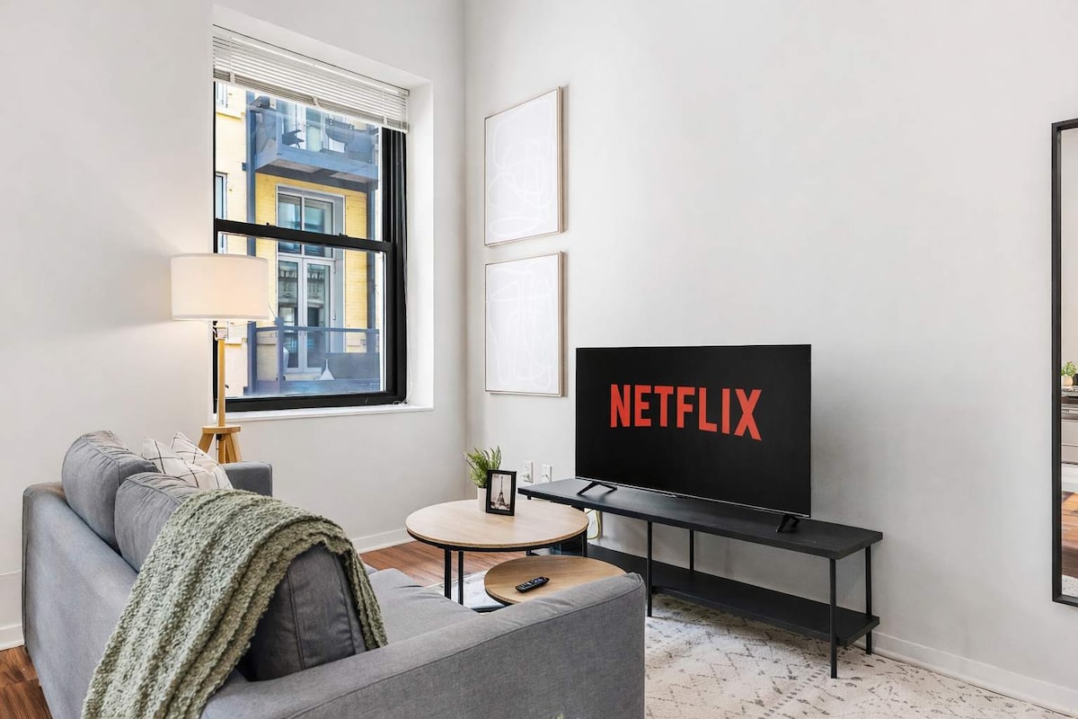 Welcome to your stylish & modern 1BR apartment in the heart of downtown Cincinnati, steps from the stadium! Perfect for 2 guests, with an air mattress available for a 3rd. Enjoy a cozy, well-designed space with chic décor, a fully stocked kitchen and smart TV. Walk to top attractions, dining, and events. Ideal for couples or business travellers. BACKGROUND CHECK & GOVERNMENT ID REQUIRED Pets not allowed, if ESA please inform during the booking for smooth check-in process.