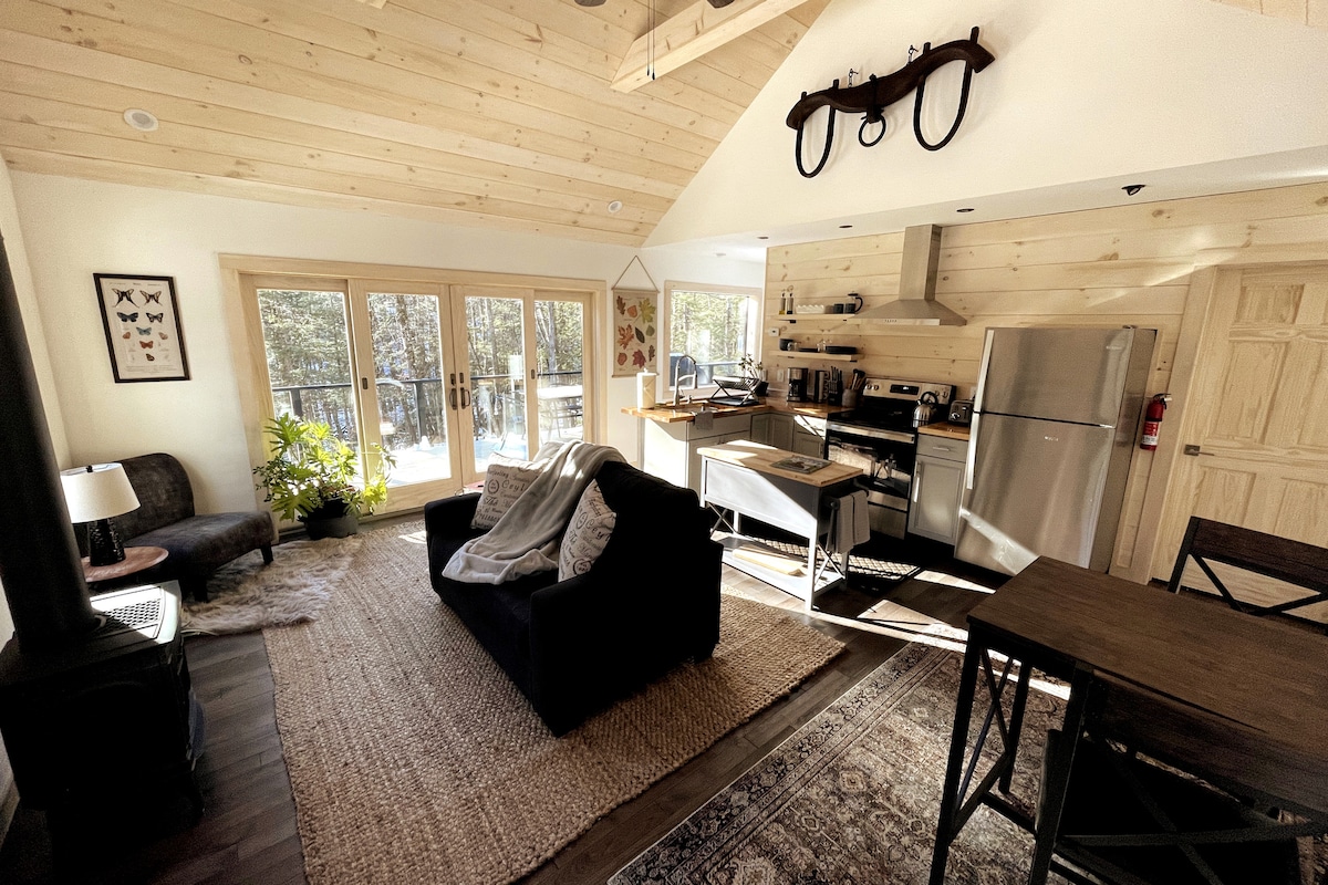 A 2,5 horas en coche de Nueva York se encuentra una casa serena, privada, junto a un arroyo y rodeada de bosques. Esta cabaña se encuentra en el mismo borde de las montañas Catskill. Es acogedora, moderna y minimalista con un toque de elegancia rústica. Todos los electrodomésticos nuevos con todas las necesidades de cocina, una cómoda cama con TV inteligente de pantalla grande, excelente servicio wifi, una romántica chimenea de gas y la terraza trasera más privada lejos del mundo para perderse durante un fin de semana en la belleza del bosque.* ¡Ahora ofrecemos ofertas de precios a mitad de semana!