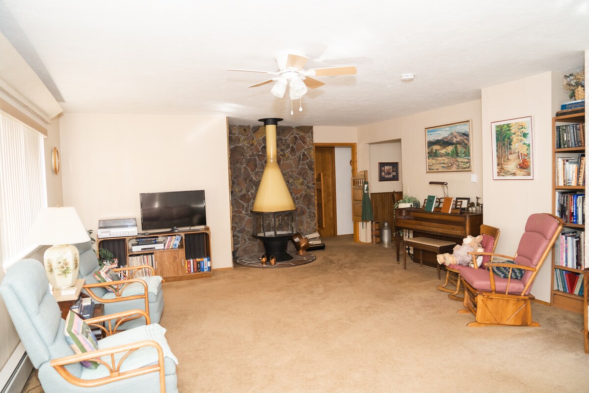 Board's Warm Springs Inn is the perfect place to make you feel like you're back at grandma's house! Nestled into the hillside of the Sawtooth Mountains, it's only a three minute drive to the ski runs off of Warm Springs Road, and a fifteen minute drive to the famous Sun Valley resort. Enjoy beautiful views of a quiet, sweeping valley all year long. Be sure not to feed the bears! No, seriously...there's lots of wildlife around these parts. We offer a 20% discount for returning guests!