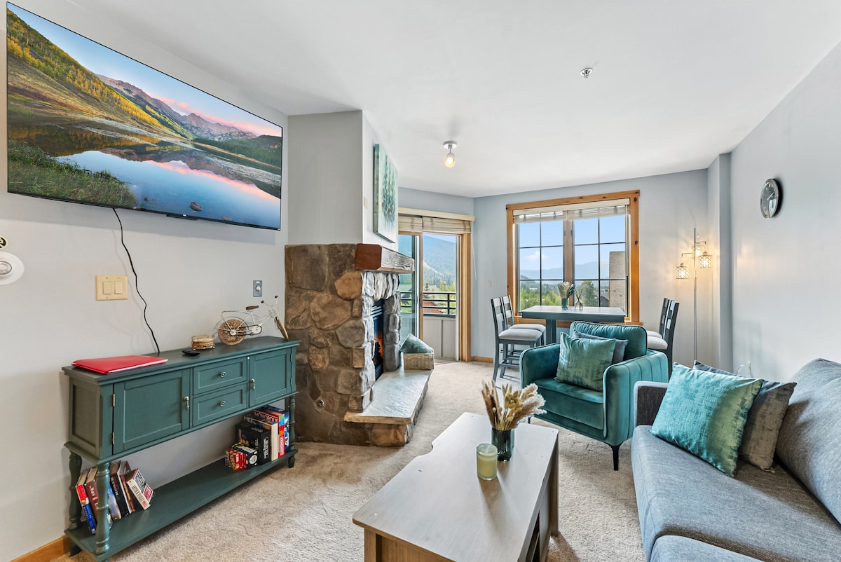 ¡Bienvenido a nuestro luminoso apartamento de 1 dormitorio en el corazón de River Run Village (Keystone Mountain)! ¡Evita los autobuses hasta los remontes, ya que este apartamento está a 3 minutos a pie de la telecabina! Este apartamento tiene capacidad para cuatro personas y cuenta con un dormitorio privado con cama tamaño king, así como una unidad actualizada con encimeras de granito. Disfruta de tu bebida favorita mientras tomas el sol y vistas espectaculares de las pistas, ya sea en el interior calentado por el fuego o en el exterior en tu propio balcón privado.