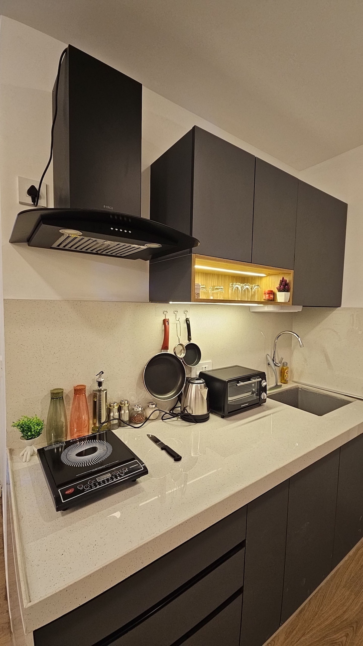 - Fully furnished, completely private 1 BHK in Pune (near Panchshil Towers, Kharadi) - Functional kitchen with basic utensils for home cooking - Home-cooked meals, freshly prepared in our home kitchen (available) - 100 Mbps high-speed Wi-Fi with UPS power backup - Dedicated on-site caretaker for assistance - Easy doorstep access to Swiggy, Zomato, Blinkit, Ola & Uber - Free daily cleaning by our trained housekeeping team - Approximately 30 minutes from Pune Airport - No pets, no parties