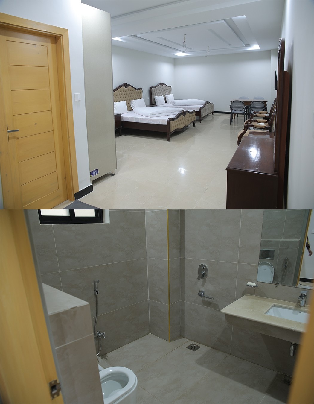 Welcome to the luxury suite, located in G7 Markaz, Islamabad. Our elegantly designed suite offers modern furnishings, a spacious layout, and a private attached bathroom with hot and cold water. Enjoy a flat-screen TV for entertainment and complimentary high-speed Wi-Fi. Start your day with a delicious breakfast for two, included with your stay. 24/7 reception. Conveniently situated near Centaurus Mall and Faisal Mosque, our hotel guarantees an unforgettable experience.