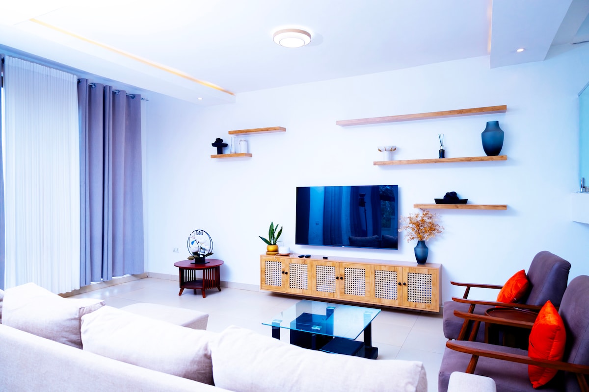 Esta es una cómoda casa moderna que está completamente amueblada, con una sala de estar de planta abierta y una cocina bien equipada. También ofrece dos dormitorios tamaño king y un futón con terraza privada y vistas a Kigali. Cuenta con una piscina y un gimnasio moderno. Los servicios públicos incluyen WIFI de fibra óptica, TV, lavadora (lavadora y secadora), seguridad 24/7 y un garaje privado. No se admiten mascotas ni se permite fumar. Las estadías largas están disponibles y podemos conversar sobre ellas.