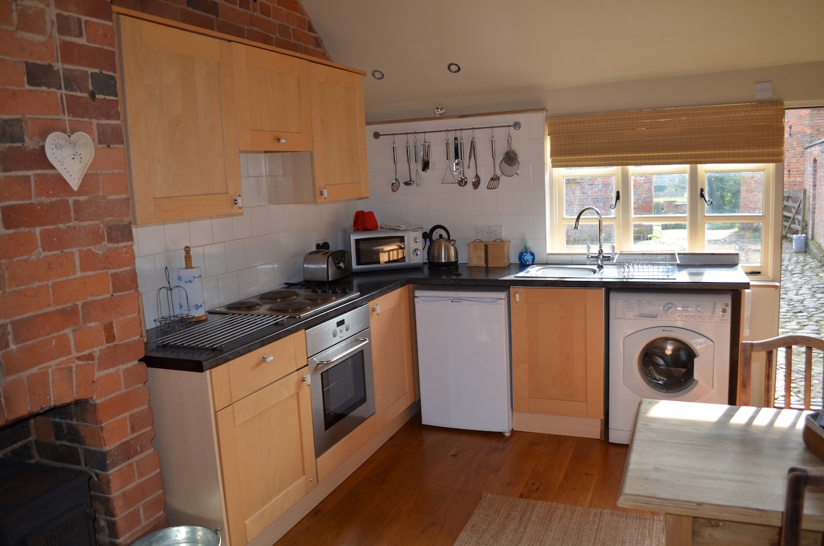 El alojamiento fue una vez un granero que data de 1900. Es una conversión contemporánea dentro del jardín trasero de la casa principal. La propiedad incorpora todo lo necesario para disfrutar de una estancia fantástica. Es completamente privada y autónoma. La planta baja consta de una sala de estar/cocina de planta abierta y se accede a ella a través de dos grandes puertas de patio. Una escalera conduce a un dormitorio luminoso y espacioso con una cama tamaño king, cajones y un armario. Hay un baño privado con ducha a ras de suelo.