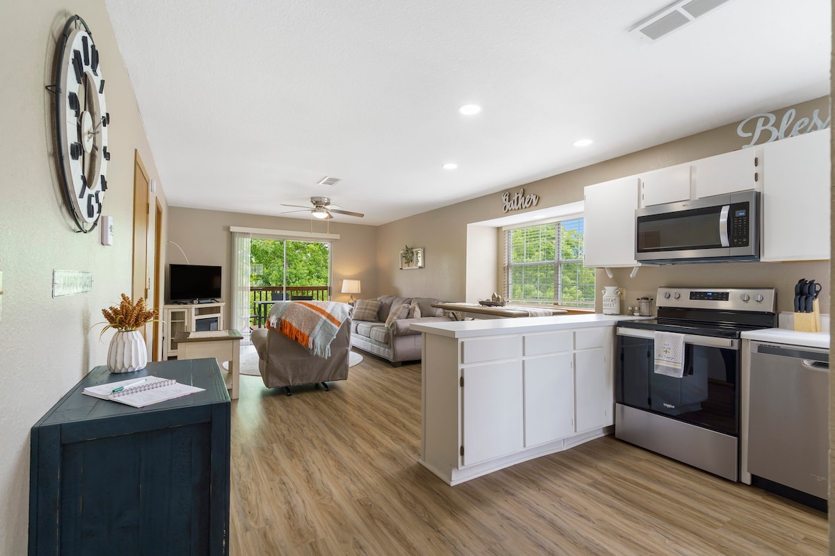 Un apartamento de 2 dormitorios y 2 baños recién renovado en la planta baja de Anchors Point, a pocos pasos de Table Rock Lake. Perfecto para que las familias experimenten todos los lujos frente al lago mientras se sienten como en casa. Ubicado en Kimberling City, a solo 9 millas de Silver Dollar City y a 20 millas de Branson. ¡La tranquilidad del lago y las puestas de sol te dejarán sin palabras! Un gran lugar para escapar en cualquier temporada.