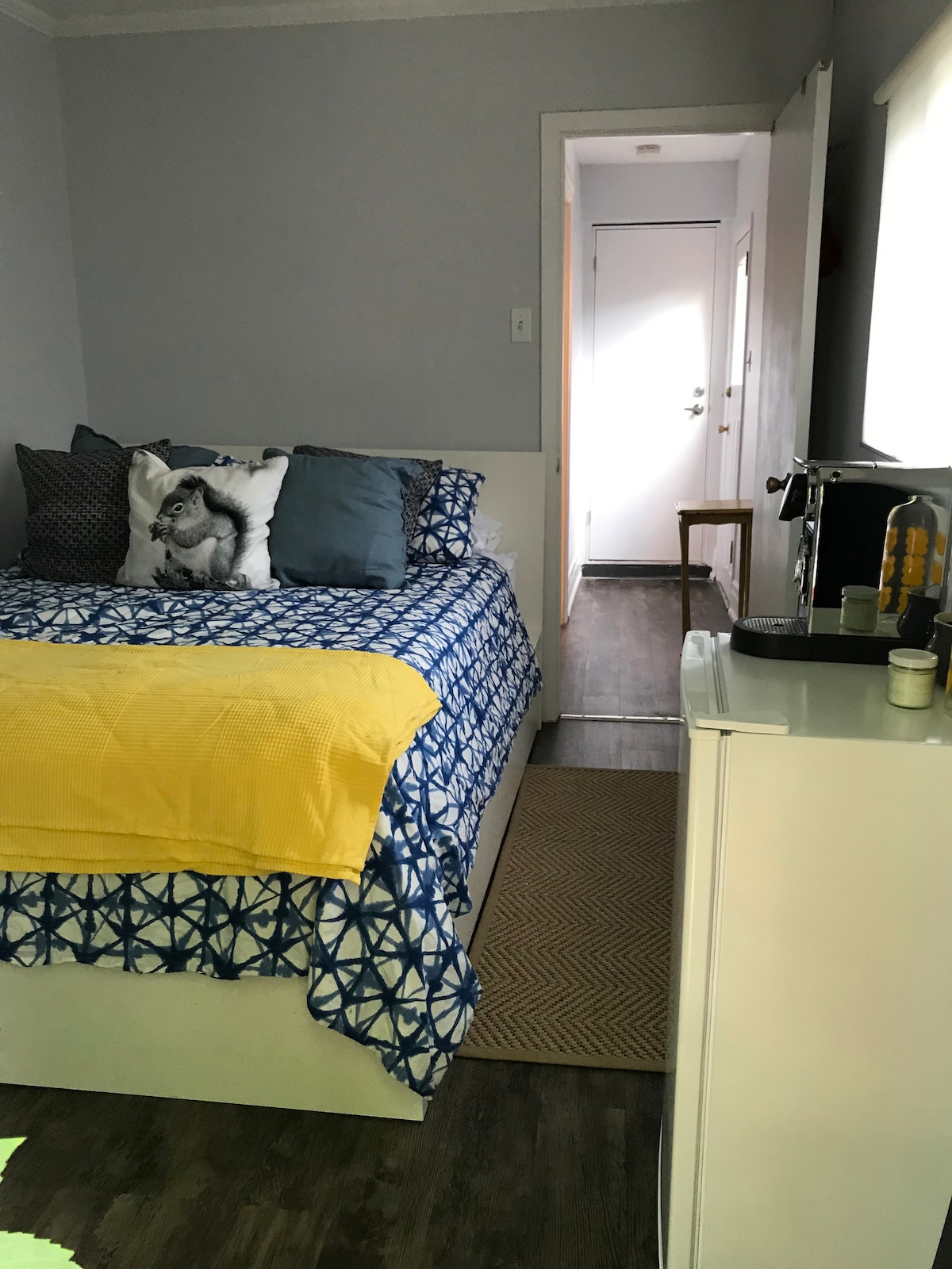 Un hogar lejos de casa que no querrás dejar. Ubicada en el moderno barrio de Queen/Dundas West, esta casa victoriana totalmente renovada es el lugar perfecto para alojarte cuando estés de visita por negocios o de vacaciones. El estudio del tercer piso cuenta con una cama tamaño queen, rincón de lectura, escritorio, nevera pequeña y baño privado con ducha de cascada. A poca distancia a pie de algunos de los mejores restaurantes/cafeterías, boutiques y vida nocturna de la ciudad, ofrecemos un espacio donde podrás relajarte y recargar energías para el día siguiente.
