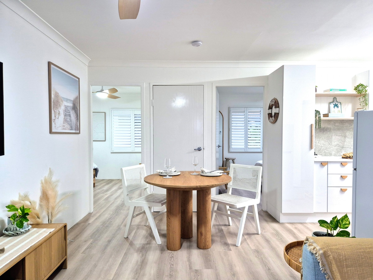 Little Fern House is a very well appointed tropical hideaway nestled in the untouched secret gem of Mudjimba Beach the heart of the Sunshine coast. Only 800 meters from the beautiful golden sands Mudjimba beach, an ideal escape for those wishing to relax in this oasis. Mudjimba village is an untouched hidden gem that has maintained a local laid-back beach vibe out of the hustle & bustle, but only 15 mins drive to Maroochydore, Coolum, Mooloolaba & Peregian & 30 mins to Noosa & Eumundi.