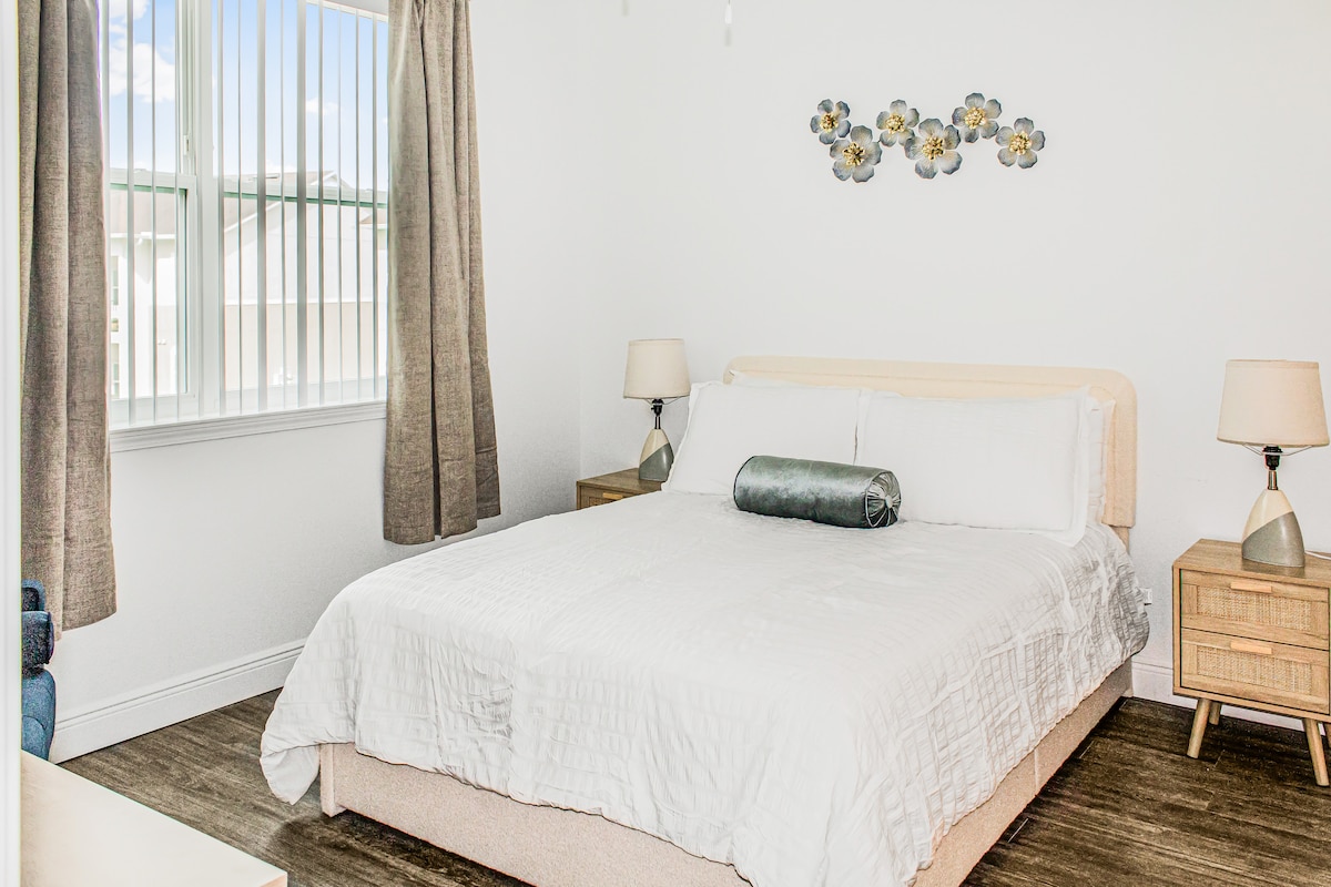 Encuentra tu calma en Boho Bliss Haven, una escapada elegante y profesionalmente limpia a solo 12 minutos de los parques temáticos. Este acogedor refugio combina tonos terrosos y encanto bohemio para crear un espacio relajante y seleccionado. Proporcionamos todo para tu comodidad y disfrute. Sumérgete en la piscina, relájate con juegos o ve al gimnasio cercano. Nuestra ubicación privilegiada está a pocos minutos de parques temáticos, restaurantes, tiendas y campos de golf. Boho Bliss Haven ofrece comodidad, conveniencia y un toque de magia.