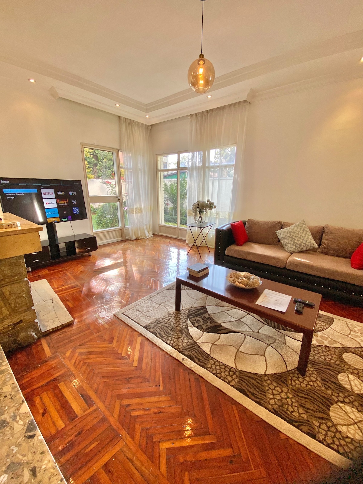 ¿Buscas un alojamiento tranquilo, seguro y perfectamente ubicado? Esta villa es exactamente eso. Se encuentra en uno de los barrios más seguros de Addis Abeba, rodeado de embajadas y residencias de expatriados, para que puedas relajarte y disfrutar de tu estancia con tranquilidad. La ubicación no podría ser mejor, a solo 5 minutos del Aeropuerto Internacional Bole y a 3 minutos de la Plaza Meskel, el Palacio Nacional, el Parque Unity y la Unión Africana. * Jardín privado, parrilla, wifi, servicio de limpieza, lavarropas, circuito cerrado de televisión y generador de respaldo