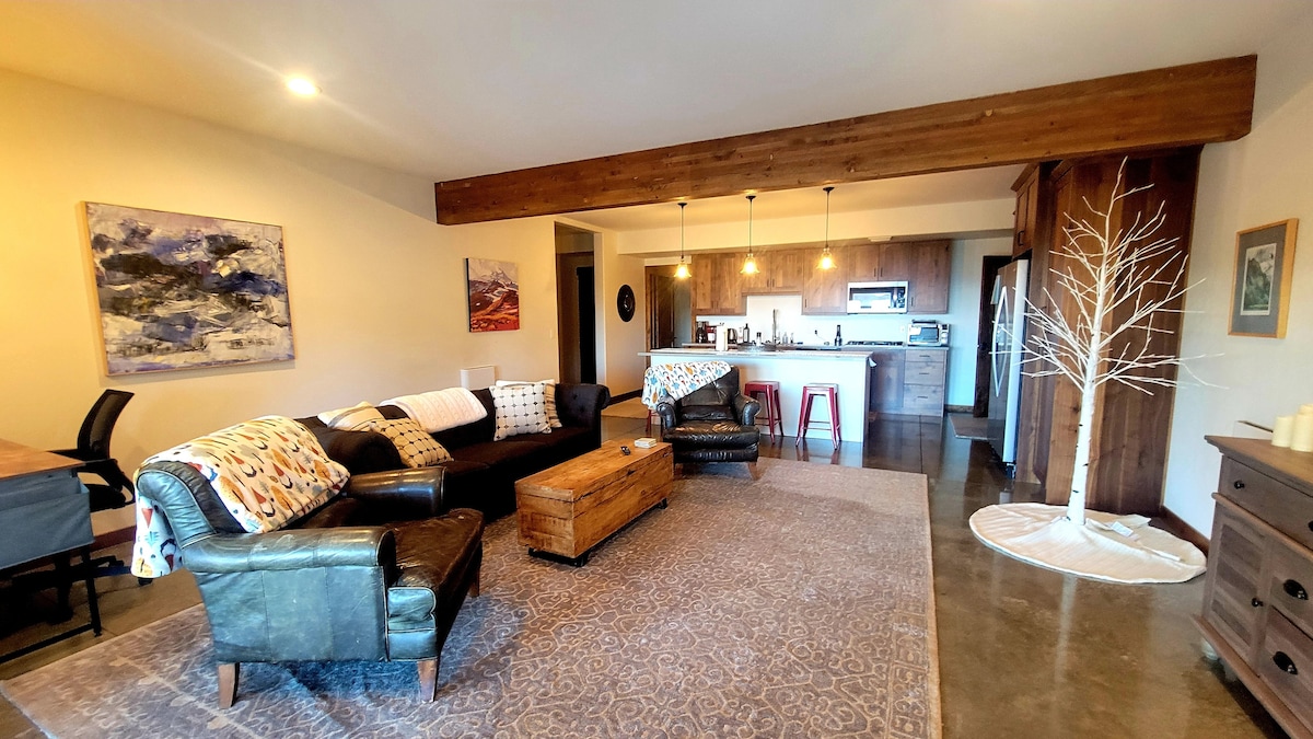 ¡El Alpen Chalet también! (Alquiler de corta duración STR #109), es un espacio encantador y aislado dentro de nuestra casa, perfecto para tu tiempo libre para explorar o tener una restauración reparadora. Hay una entrada independiente, jacuzzi, chimenea y aparcamiento en las instalaciones para un coche. Estamos cerca del centro de la ciudad (a 5 minutos en coche) y a pocos minutos de actividades recreativas al aire libre como senderismo, escalada, golf, rafting, ciclismo de montaña y esquí de fondo. ¡Hermoso entorno con vistas encantadoras!