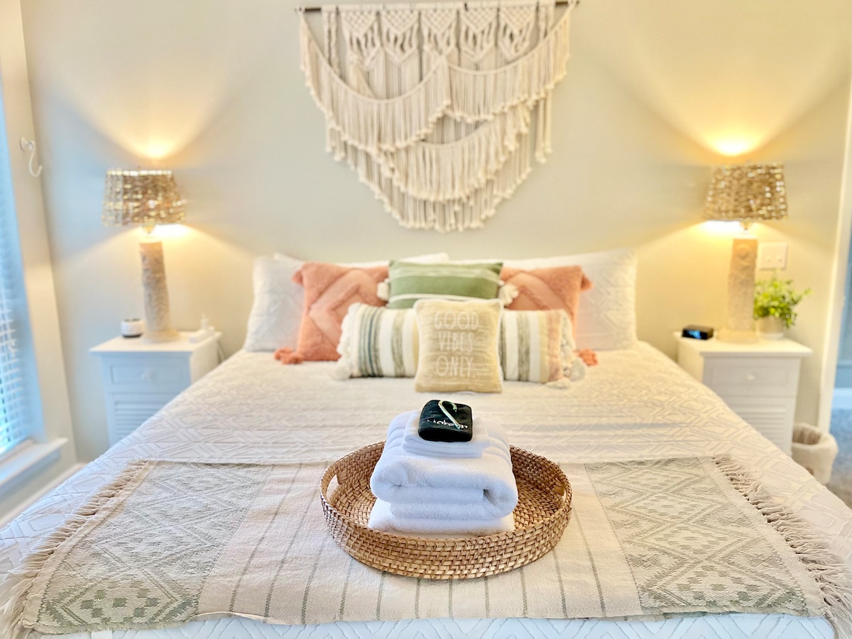 ¡Te doy la bienvenida a “Seas the Bay”, un lugar rodeado de agua y majestuosos robles! Esta pintoresca casa de campo de 1000 pies cuadrados ofrece impresionantes vistas de Kitty Hawk Bay desde la casa, la terraza y el muelle. A solo 5 minutos de la playa, la comida local y la vida nocturna. Nuestro muelle en la bahía es un lugar perfecto para disfrutar de los amaneceres en el agua. Este alojamiento tiene capacidad para 4 huéspedes, ideal para una familia, amigos o parejas. Otro alojamiento en Airbnb se encuentra en la misma propiedad a la izquierda, hay estacionamiento compartido, pero no hay espacios compartidos.