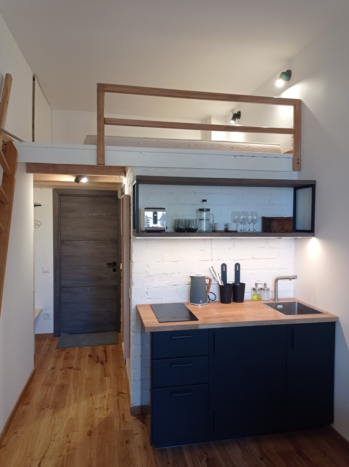 Old Town Loft tiene capacidad para un máximo de 4 huéspedes. Instalaciones del apartamento: dormitorio (accesible por escalera): cómoda cama doble, toda la ropa de cama (sábanas, almohadas, mantas), baño: ducha, inodoro, artículos de aseo, toallas, secadora, cocina totalmente equipada con utensilios de cocina, placa de inducción, platos, sartenes, nevera, té y café, agua potable. Hay un sofá cama con parte para dormir para dos personas en el salón. Armario con perchas. Recuperador. Wifi rápido. Televisión inteligente.