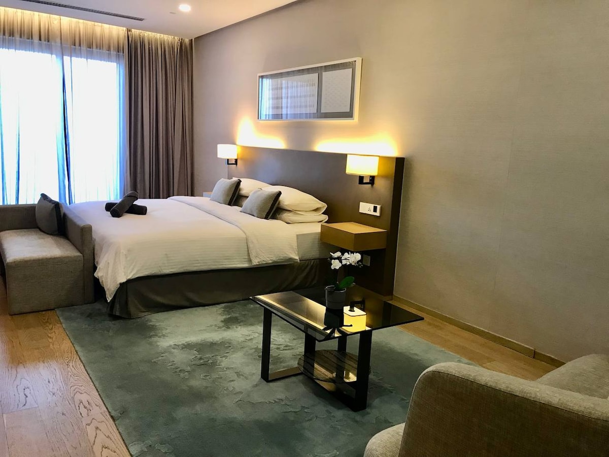 Open bedroom curtains in the morning to reveal a stunning vista of the city—a view shared by a handy work desk. Calming shades of taupe and gray maintain a sophisticated feel. Modern bathroom and kitchen details make this an ideal base for exploring. My estimated 900 sqft one-bedroom service apartment is a fully-furnished and fully air-conditioning with integrated living, dining, kitchen and bedroom areas Living: Comfortable 3 seater sofa, lounger chair and a flat screen TV to give guests a comfortable place to spend leisure time Kitchen: Feel to prepare your own meal? No worries this modern and well-equipped kitchen has everything you want to prepare your food either for yourself or for your love one. Don’t be surprised it even has a washing machine that comes with dryer build in here Dining: A simple and cozy dining table that adjacent to the kitchen for convenient in serving, feel free to prepare your own meal and enjoy eating here as well as to share a laugh and strengthen relationships Bedroom: The place where you hide away at the end of the day to rest, relax before drifting off into blissful sleep, this spacious and comfortable room comes with king size bed, walk in wardrobe and desk, flat screen TV and also private access to superb bathroom will gave you an unforgettable resting environment. Last but not least, Free Wifi internet access is provided for guests to use in my apartment so that guests can stay in touch with friends and family or take care of business anytime The common facilities to Sky Gym, located at 39 floor, Infinity lap pool, game rooms and kids play ground at 5th floor that operate daily from 7.00am to 10.00pm Please ask as much or as little as you like. The apartment is in Fraser Residence Hotel in Central Kuala Lumpur. It's 800 yards from the Petronas Twin Towers and the Suria KLCC shopping center. As for the conveniency, grocery store is just a minute away, public transportation not only can be reached in a few minutes’ walk like Bukit Nanas Monorail Station (5 min) and Dang Wangi LRT Station (7 min) but guests also able to achieve by foot to the nearby Malaysia Tourism Centre (7 min), Petronas Twin Towers (18 min), Hard Rock Café (8 min), Kuala Lumpur Tower (29 min) and many other attractions. There is also a public bus service (GOKL City Bus) that offer riders free of charge for commuters within the Central Business District of Kuala Lumpur, you are welcome to travel around to some of the popular spots like Pavillion, Bukit Bintang, Petronas Twin Tower, Pasar Seni and many more... We provide free cleaning(One Week Once) to those who stay for 7 nights and above which includes changing of Linens, towels and basic cleanup. (Upon Request - One day advance notice) The apartment is in 188 Suites in Central Kuala Lumpur. It's 800 yards from the Petronas Twin Towers and the Suria KLCC shopping center.