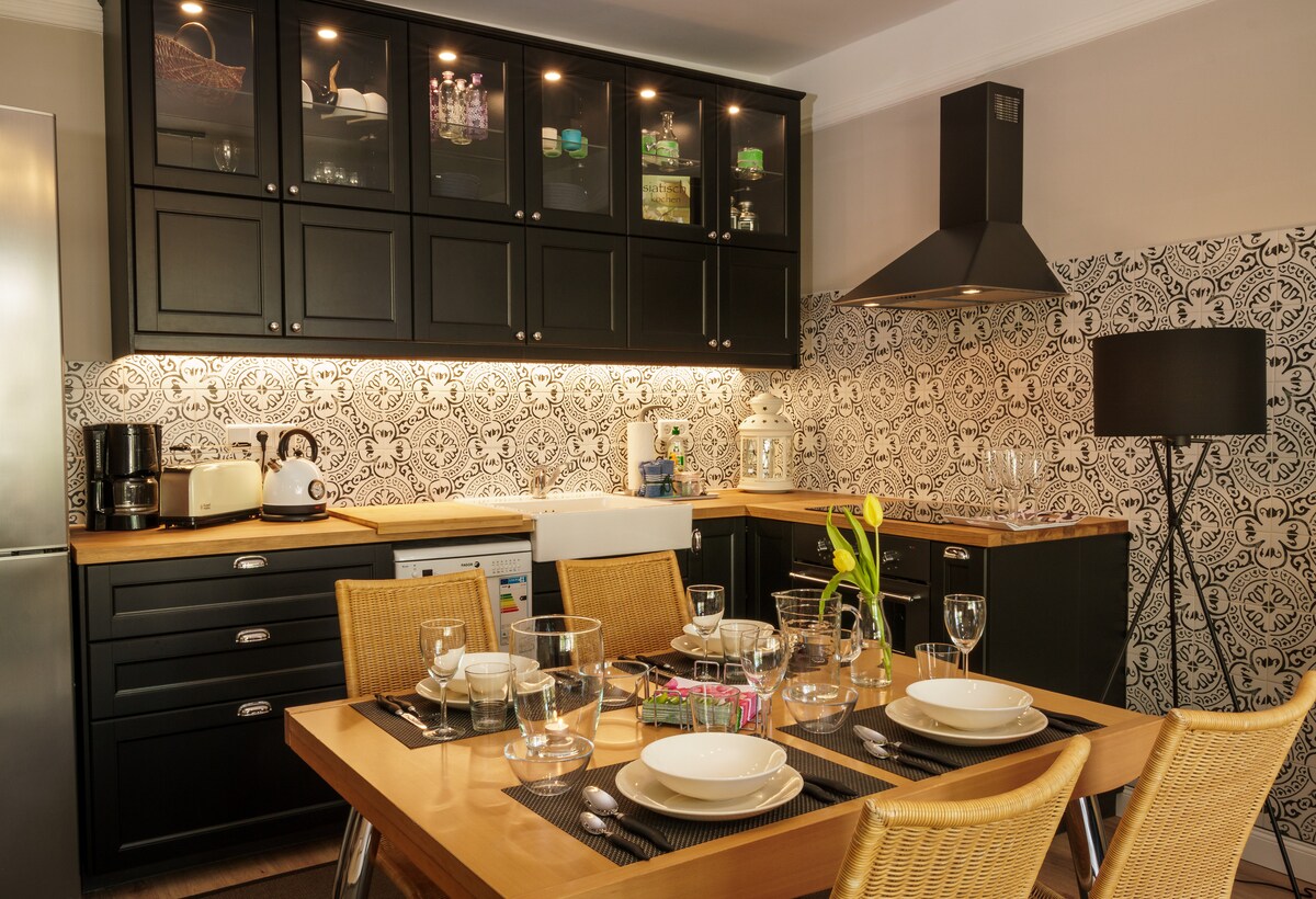 El hermoso apartamento independiente en la casa principal de Villa Herzfeld espera veros como nuestros huéspedes. La villa centenaria tiene muchas historias que contar y, mientras tanto, ha sido renovada y equipada con un estilo moderno. Te espera un acogedor y tranquilo apartamento con acceso privado. El apartamento está equipado con todo lo necesario para una estancia perfecta. El aparcamiento está reservado en la propiedad.