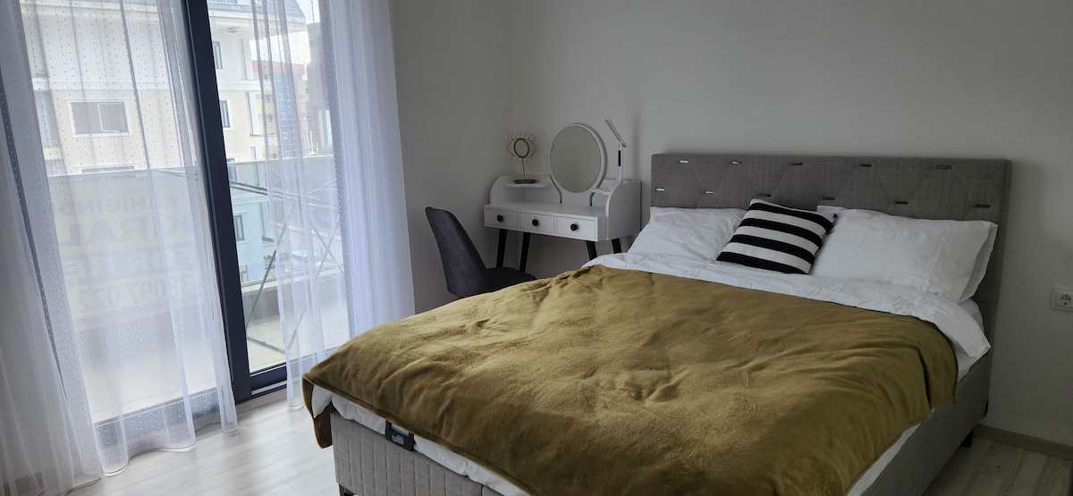Apartamento 1+1 en el cuarto piso de 5, ubicado a igual distancia de las playas de Cleopatra y Keykubat, cerca del hospital, escuela, tiendas, cafeterías, parada de autobús. Cortinas a prueba de luz en todas las habitaciones, secador de pelo, toallas, cubiertos, mesa corrediza, lavavajillas, aspiradora, TV inteligente, Internet, amplio armario, 2 camas con almacenamiento, sofá en la sala de estar para hasta 3 personas, pisos con calefacción, todo para una estancia cómoda para un máximo de 5 personas. Disfruta de una estancia elegante en el centro de la ciudad.