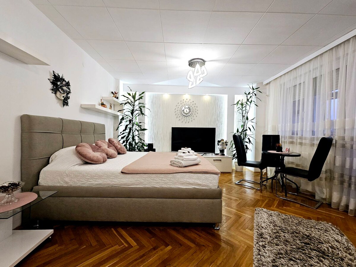Los apartamentos Deluxe Jade ofrecen un refugio sereno para familias que buscan relajación y comodidad en el corazón de Niš. El apartamento está elegantemente amueblado con una decoración de lujo, lo que proporciona un ambiente perfecto para relajarse después de un día de explorar la ciudad. Los huéspedes pueden disfrutar de unas vistas impresionantes de Niš, lo que mejora la experiencia de descanso y ocio. Con alojamientos espaciosos y comodidades modernas, los apartamentos Deluxe Jade garantizan una estancia inolvidable para todos.