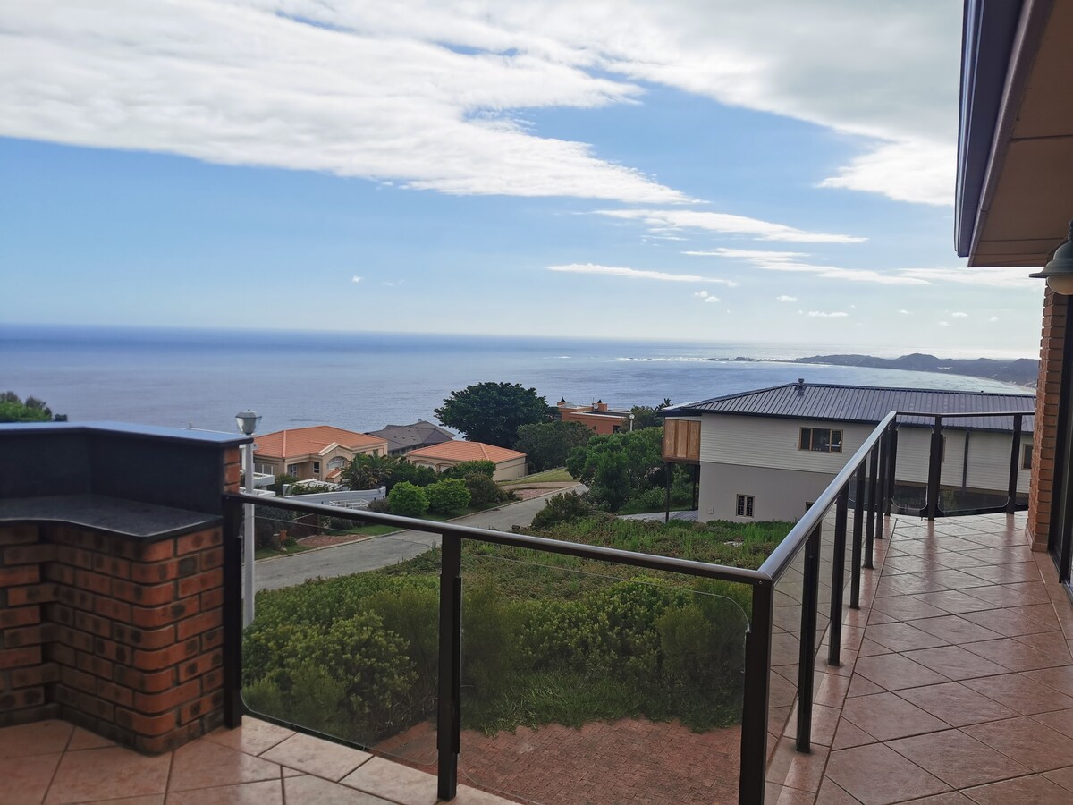 With picturesque views over the Indian Ocean & Brenton-On-Sea as well as a great location,this holiday/short term rental will take your breath away! Very spacious and beautifully furnished semi-detached house, offers 3 bedrooms with en-suite bathrooms ,full , well- equipped kitchen,spacious dining room, large lounge ,sparkling pool and a social fire- pit area. House conveniently located +/- 200m from the main beach—3-5 minute walk. SOLAR POWERED - NO LOAD SHEDDING. Cleaning may be arranged .