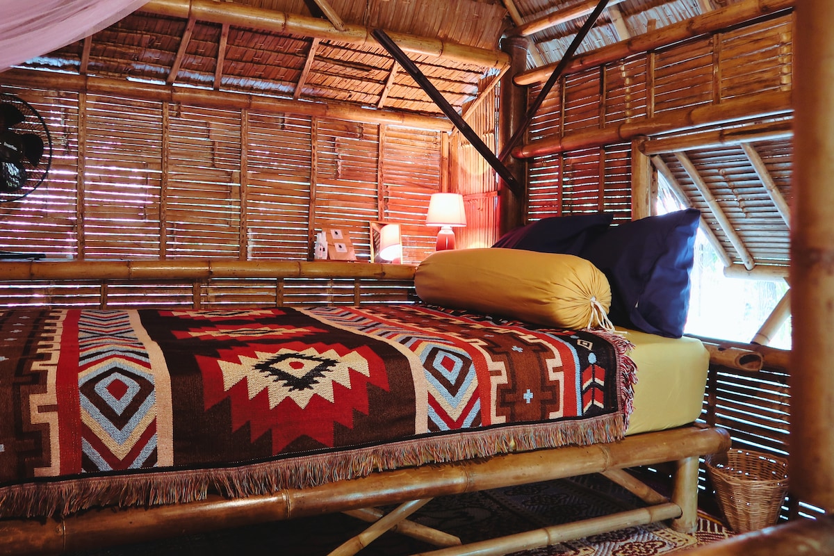 Escape to this handcrafted wooden cabin nestled in the jungle canopy with panoramic mountain views. Perfect for couples or remote workers craving nature immersion without sacrificing comfort. Swing in your private hammock watching sunrise over the hills, or work from the dedicated desk surrounded by treetops. Warm teak interiors, full kitchen, modern bathroom with artisan stone sink. Peaceful location away from the crowds yet 10 mins to beaches. Self check-in, A/C, fast WiFi.