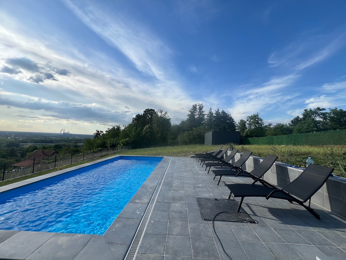 🏡 Welcome to the colorful A-frame cabin at Dedovina Petrović — your perfect escape from the city! Just 1.5 hours from Belgrade, nestled in the village of Galović, this hilltop home offers stunning views, total peace, and no noisy neighbors — ideal for a true reset. Enjoy the pool with a breathtaking panorama, outdoor BBQs, and fresh countryside air. ✨☀️ 📅 Book your stay and unplug from the city — completely!