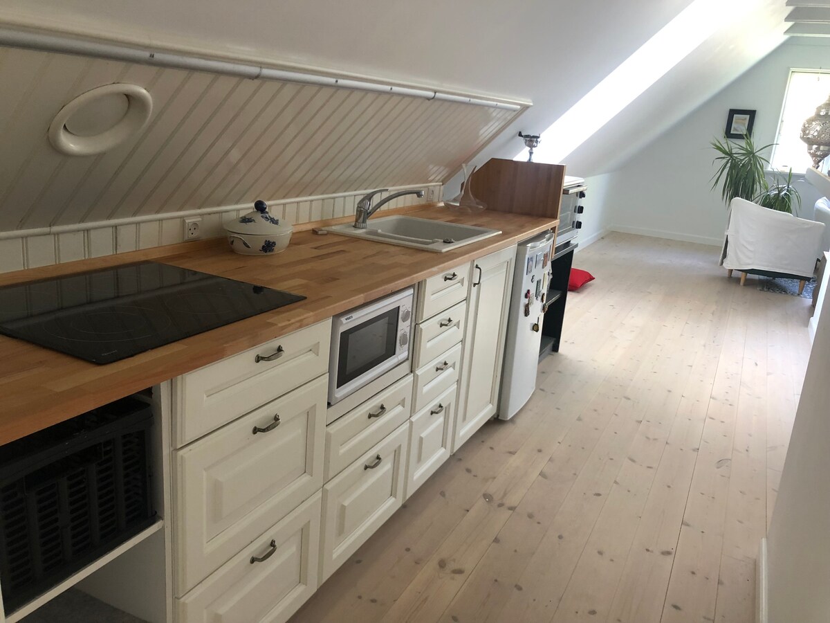 Welcome to our newly renovated penthouse in an 1800s house, located on the main street in Køge. The penthouse features a master bedroom, a guest room with an office and a sofa bed, a modern kitchen, a bathroom. The living room boasts impressive ceiling height and beautiful wooden beams, elegant lighting. From the living room, you can access a small balcony with a gas grill, which leads to a staircase down to your private parking. Only a 3-minute walk to the train and 10 minutes to the sea.