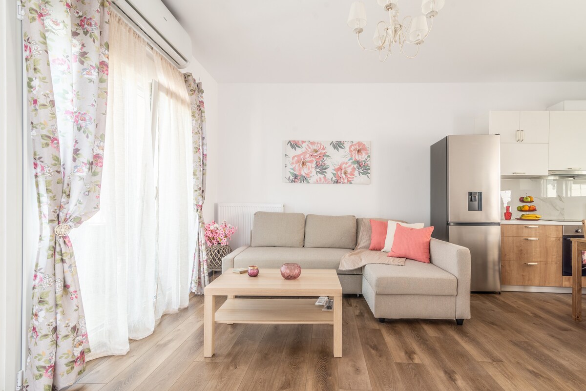 Bask by the Beach in a Chic Apartment Overlooking the Sea. Enjoy breathtaking sunsets from this modern apartment just steps away from Ammoudara beach. Start your day with a swim or relax on the balcony with a sea view. Traditional Cretan lace and artwork add a touch of folklore to the stylish interior. The house is fully equipped with everything you need, including a kitchen and modern amenities like Wi-Fi, air conditioning, and a TV. Take a short drive og 10 minutes to Heraklion city center.