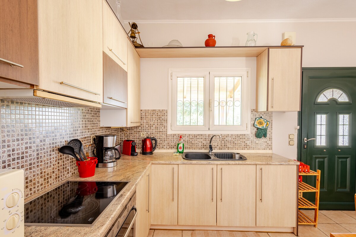 The house is located on a small hill full of olives trees.The view is breathtaking.The village is at a distance of 1,5 km from the house.There you will find anything you need,greek restaurants,cafes,super market,gas station,pharmacy and doctor"s office.The closest beach,where you can find beach bars,sunbeds and restaurants,is 4 km away and the sea is safe even for children.there are 10 more beaches in the area,which you can reach by car easily.Some of them are quiet and others are crowded.