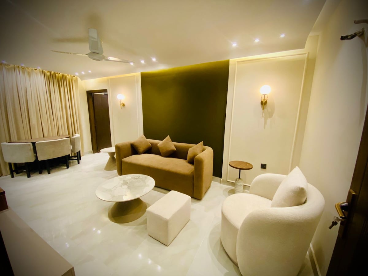 1 BHK Apartment by Staysia Rooms – Talha Block, Bahria Town Lahore • Located on the 6th floor with beautiful view • 1 Bedroom with AC • Sofa-cum-bed in the lounge for extra guests • WiFi device for reliable internet access • Fully furnished with all basic essentials • Modern and cozy interiors for a comfortable stay • Ideal for couples, solo travelers, or small families • No parties, drugs, or loud music to ensure a quiet environment • For longer stays, electricity will be charged seperately