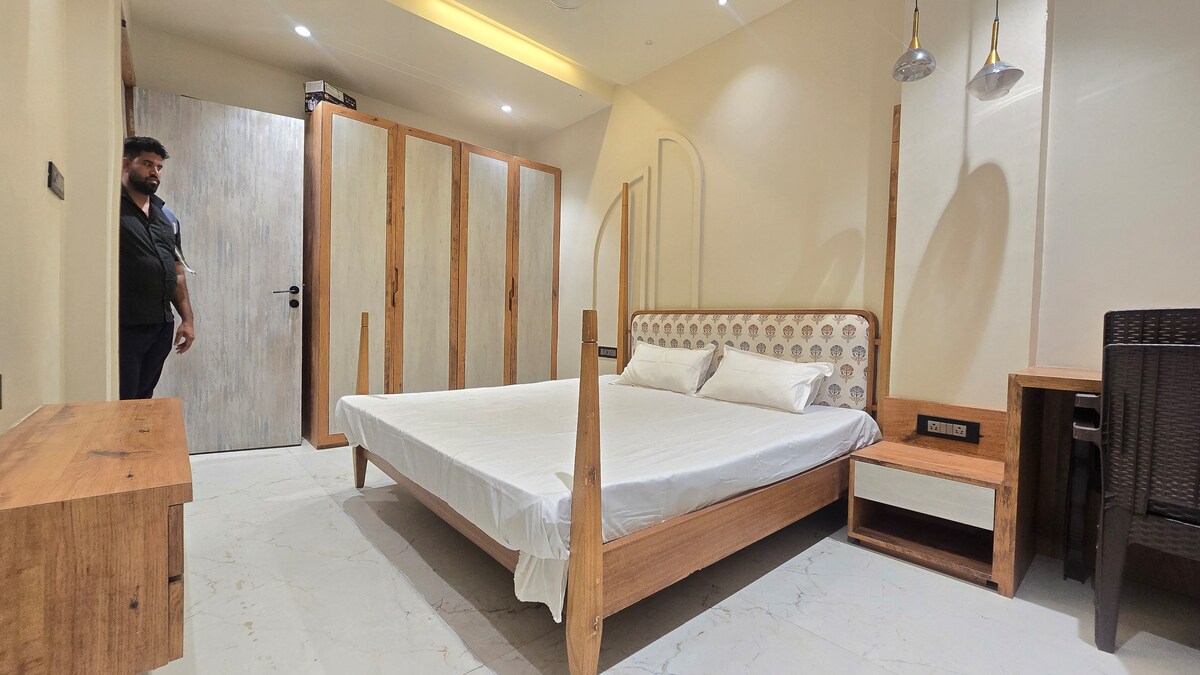 Un apartamento residencial mantenido por el propietario con estudio, 1bhk, 2 apartamentos con capacidad para 2-4 personas, de una sola persona a una familia con todas las instalaciones, apartamentos de 1bhk/2bhk totalmente amueblados con una amplia habitación frente al área verde del parque, techo abierto, servicios como wifi gratuito, limpieza, eliminación de residuos, respaldo de energía, cocina con todos los utensilios necesarios, con todos los muebles de madera y equipos de marca como ac, geyser, nevera y escape. Serás atendido en familia. Por favor, visita una vez. Gracias.