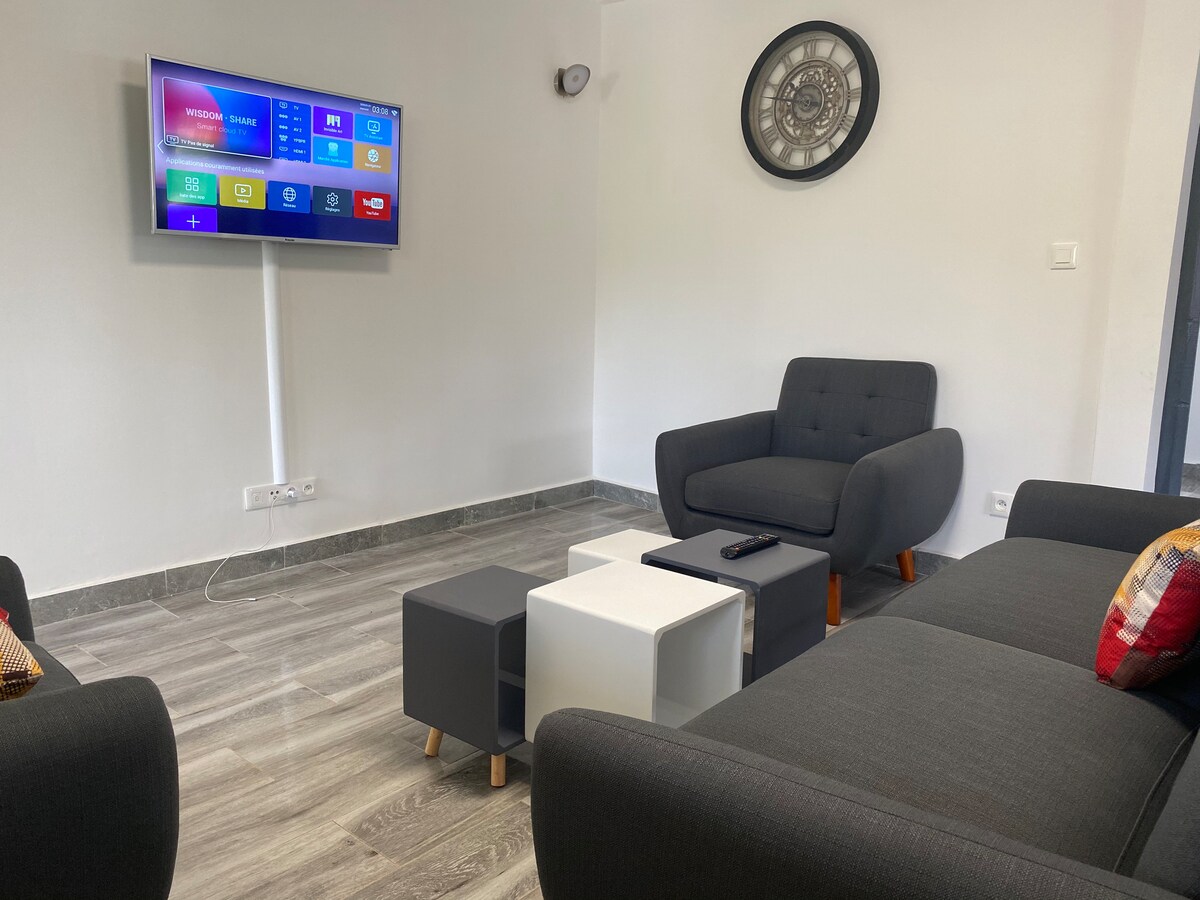 En una zona tranquila situada a 5 minutos a pie del aeropuerto, Le Madina una casa típica del encanto de Mahorais, ofrece 4 cómodas habitaciones con TV conectada. ¡Además, venga a disfrutar en familia, con amigos o colegas de este hermoso alojamiento que ofrece agradables momentos en perspectiva! Nota: Posibilidad de alquilar camas adicionales y cunas. No dudes en enviarnos un mensaje si quieres recibir información adicional;-)