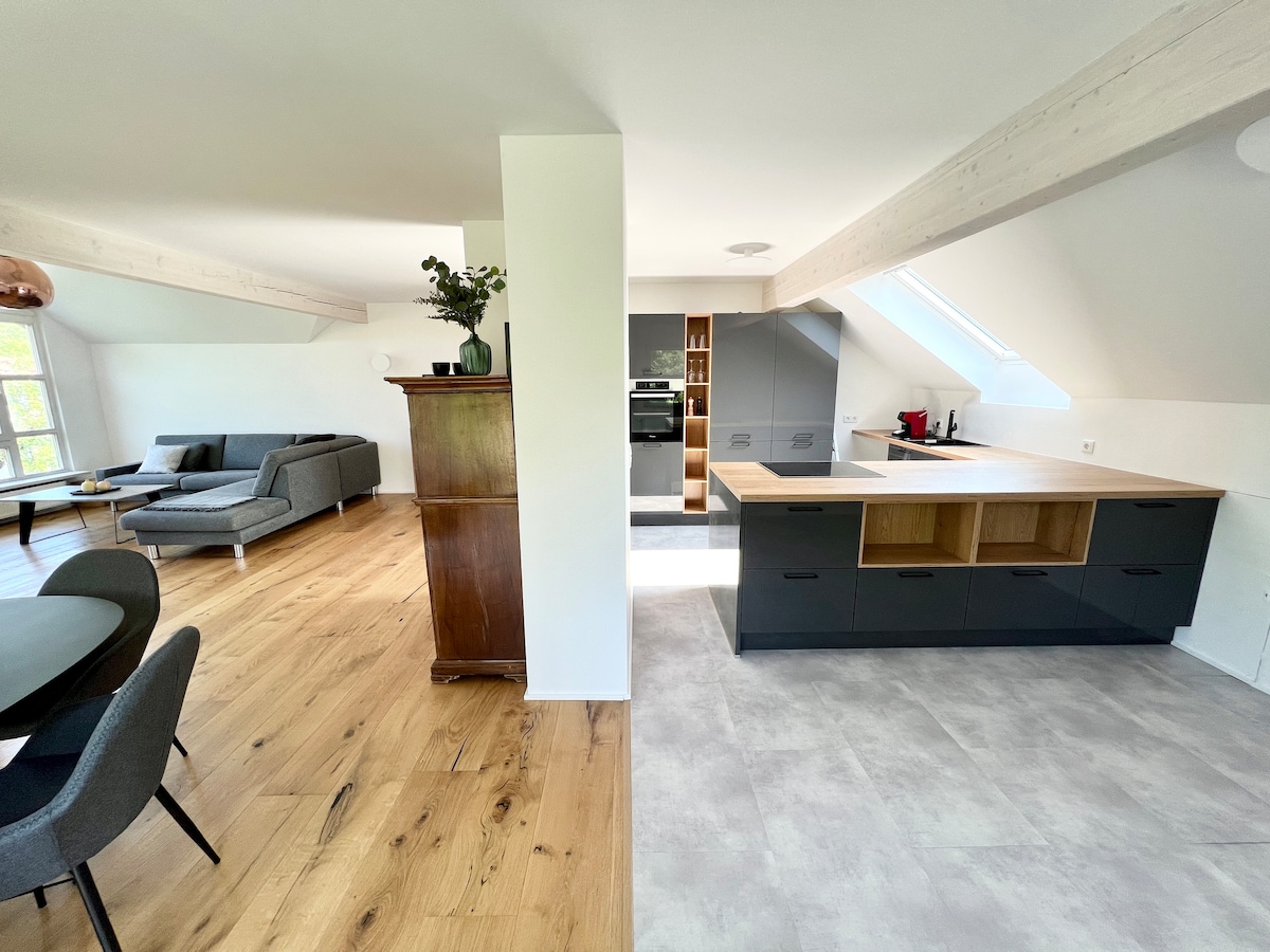 Loft de diseño cerca de Múnich, tren suburbano, terraza en la azotea