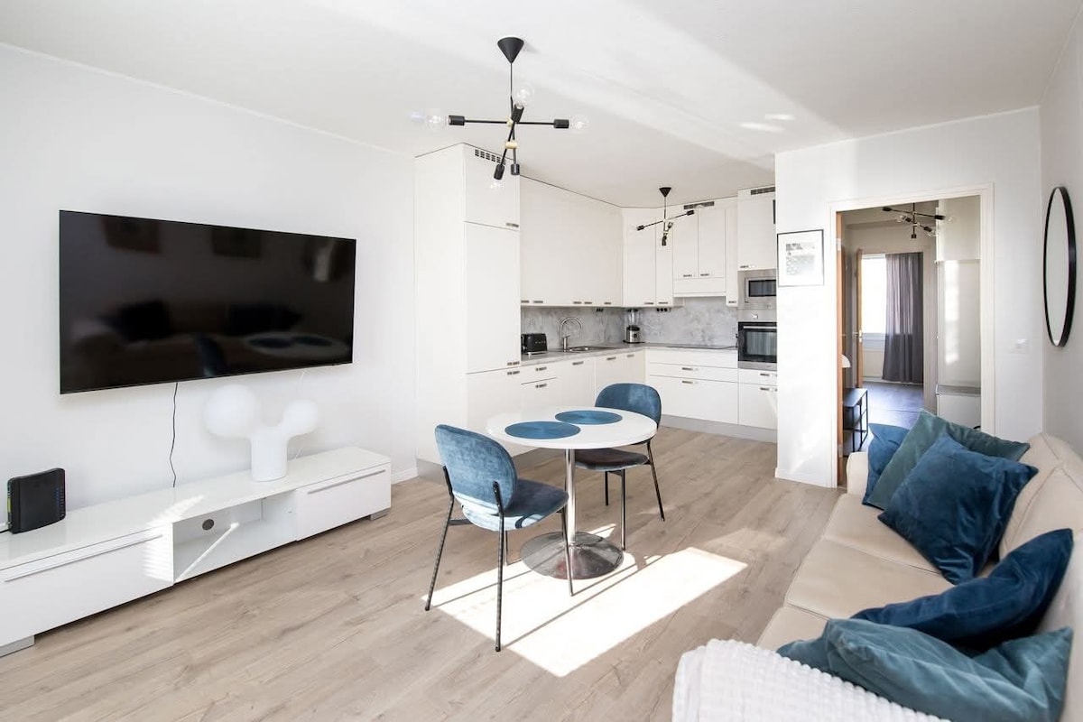 Elegante apartamento en una ubicación tranquila, cerca del centro de Kauhajoki (aproximadamente 1 km). El apartamento tiene una plaza de aparcamiento. ¡Interiores recién renovados! Salón, cocina, dormitorio, baño y sauna. El precio incluye ropa de cama y toallas. El desayuno está incluido en las primeras noches (café, leche, mantequilla, gachas, pan, etc.). Alojamiento para 1-4 personas. Cama de matrimonio y sofá cama.