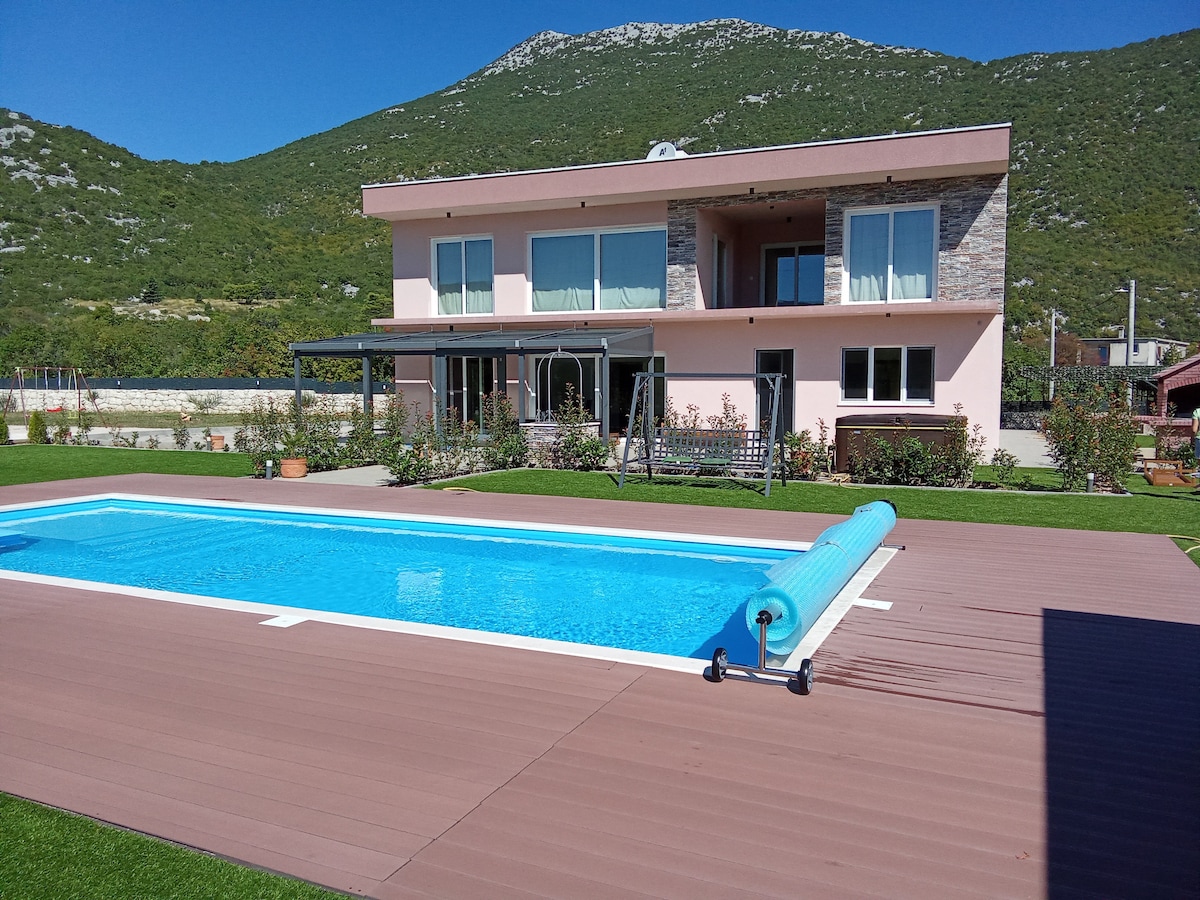 Villa Host is est. 2025 by familly Vuletic. We put all our love and tourist expirience in our villa (we are hosts for more then 11 years), and we would like that all our guest fell like home. Villa is situated on 1400 m2 land, consists of 4 bedroms with A/C, 2 bathrooms, large living room, fully equiped kitchen and 2 wardrobe. Outside space consist of large swimingpool with sunbeds, kids playgound (swing, toboggan and trampoline) covered summer kitchen with dinning table, lawn, and lott of trees