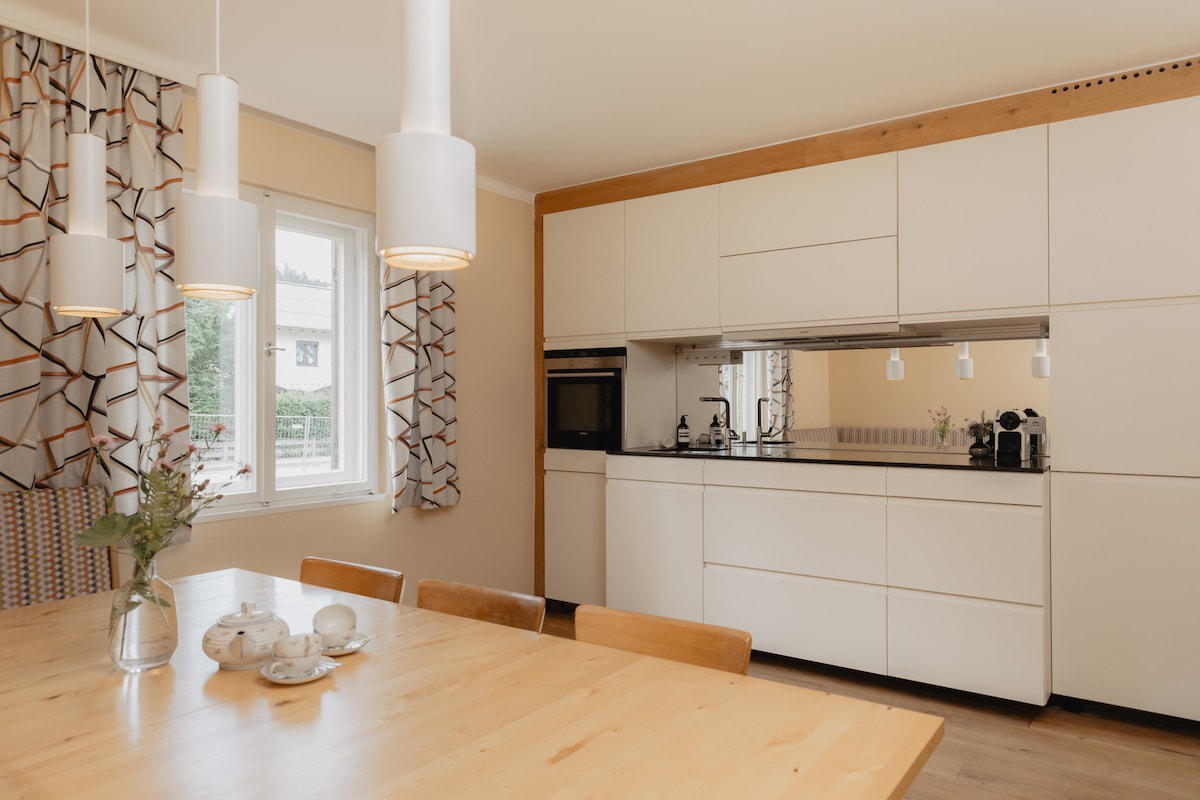 Welcome to the beautiful district of Garmisch. As the epitome of luxury and alpine elegance, our apartments set new standards in the exclusive, just as cosmopolitan and quiet recreation area in Garmisch Partenkirchen. Thanks to its privileged location, the apartment offers you a breathtaking view, where the morning sun welcomes you for a cosy breakfast with a view of the Zugspitze.