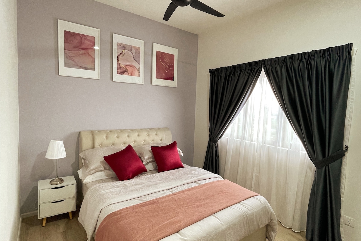 Ventaja de 1 dormitorio privado acogedor, creando una verdadera experiencia 🏠 hogareña lejos de casa ❤️ Cerca y fácil a 5-16 minutos en 🚗 auto de la ciudad de Kuala Lumpur, pero ofrece un ambiente tranquilo de la bulliciosa vida de la ciudad. 🏙️ Fácil 🔎 MyTown, IKEA, Sunway Velocity Mall (7-9 minutos) The Exchange TRX (10 minutos) KLCC, KL Pavilion, zona de Bukit Bintang (16 minutos) Traslado gratuito en 🚐 MRT Comida deliciosa y auténtica🍽️, lugares famosos con internet, todo cerca ✅ Ideal para familias y amigos para relajarse, disfrutar y conectarse 👒🧳