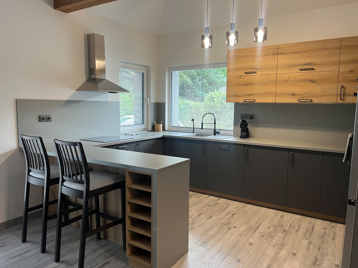 ¡Disfruta de una estancia inolvidable en este alojamiento moderno y elegantemente decorado donde toda la familia vendrá por su cuenta! Se encuentra en un entorno pintoresco a solo 20 minutos de Frýdek-Místek y a solo 6 minutos de Frýdlant nad Ostravicí, un punto de partida ideal para aventuras en las montañas de Beskydy.
