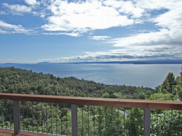 Este refugio con vista al lago está ubicado en el lado suroeste del lago Taupo. El cruce de Tongariro, el monte Ruapehu Skifield, el turismo de aventura Turangi, las piscinas de agua caliente, los excelentes paseos por los arbustos y la pesca de truchas están muy cerca. Admira las vistas del lago y escucha el canto de los pájaros desde las copas de los árboles. Disfrute del café estilo barista, tome un libro y simplemente relájese y disfrute de las vistas desde la amplia terraza. Por la noche, ¿por qué no barbacoa con bebidas en la terraza o en invierno, disfrutar del ambiente del fuego caliente!