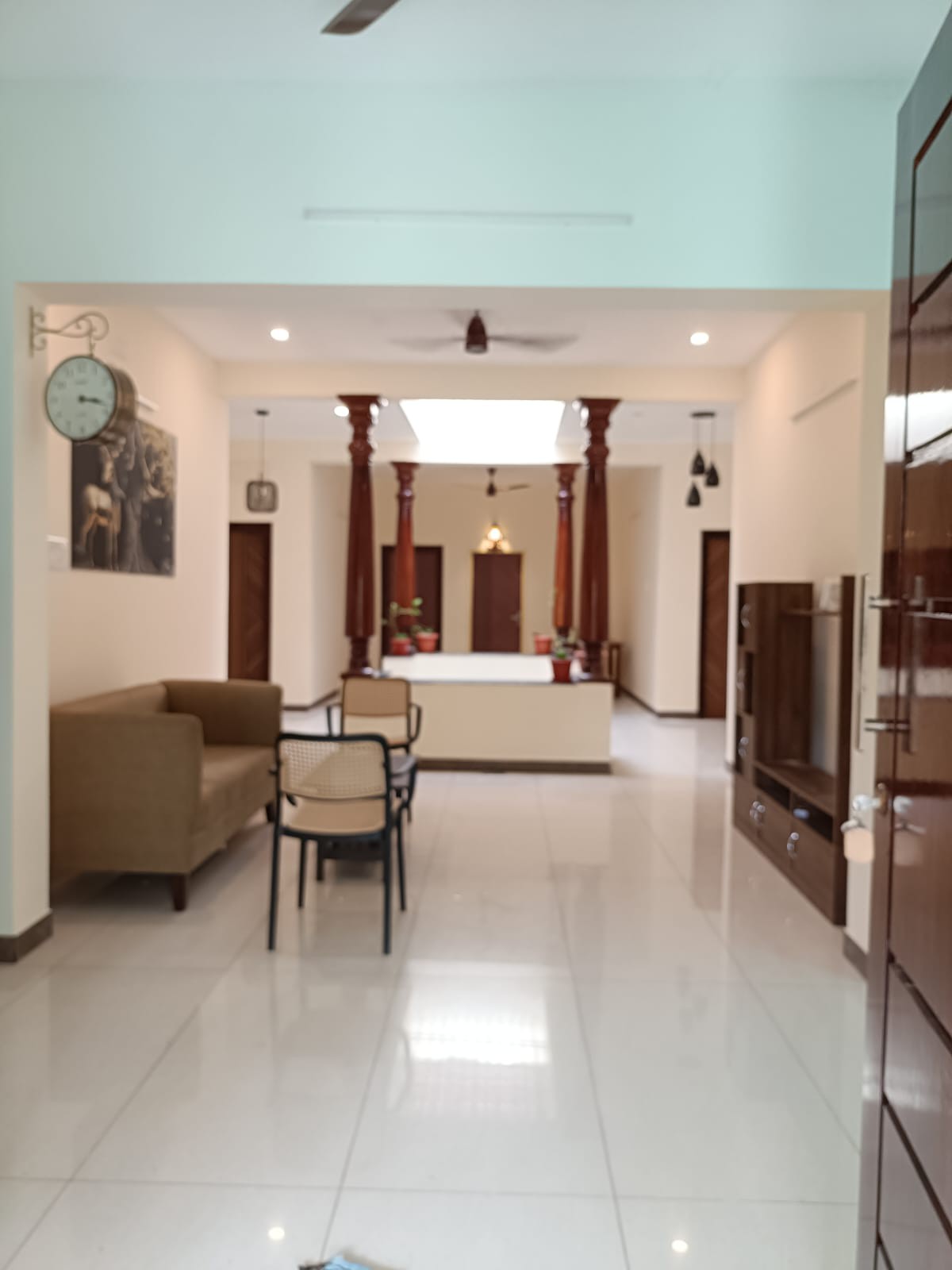 Trae a toda la familia a este gran lugar. Casa patrimonio de más de 100 años remodelada con comodidades modernas, habitaciones espaciosas, pilares de madera de Chettinad, etc. Perfecto para una familia de 4 adultos + 2 niños o 5 adultos. Los dormitorios con aire acondicionado y baños y la sala de estar se abren a una cocina moderna, un jardín y una terraza abierta. Cuidador disponible las 24 horas, los 7 días de la semana. Servicios de limpieza y lavado disponibles previa solicitud. Perfecto para personas que planean un recorrido por el templo en la región. Ubicación: a 8 km de GST Road hacia Arasur.