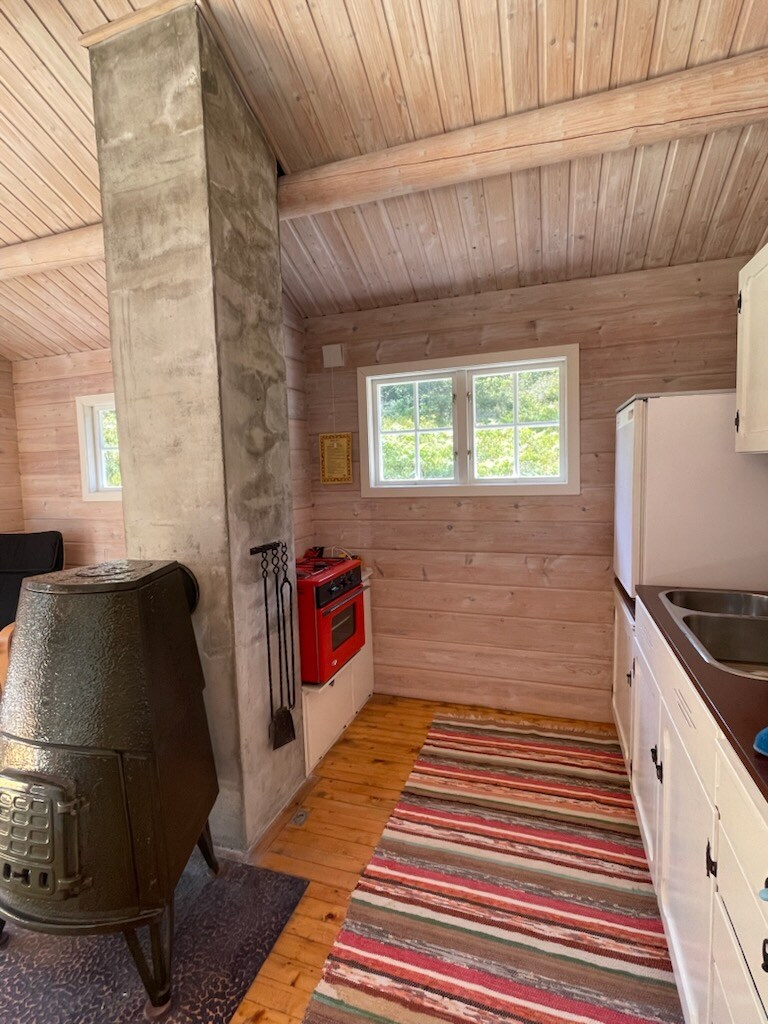 Koselig hytte rett ved sjøen. Båt med motor 9,9 hk, årer, flytebrygge inkludert. Usjenert beliggenhet. Sengklær og håndklær inkludert. Flytevester og noe fiskeutstyr. Her kan du finne roen tett på naturen. Romslig veranda med utemøbler. Grill. Lading for mobil og pad. Bær- og turterreng rett utenfor hyttedøra. 1 t 20 min kjøring fra Trondheim, felles parkeringsplass. Dagligvarebutikk er kun 15 min. kjøring unna Koselig kafe i gangavstand, med asiatisk preg, kioskvarer, bensinstasjon.