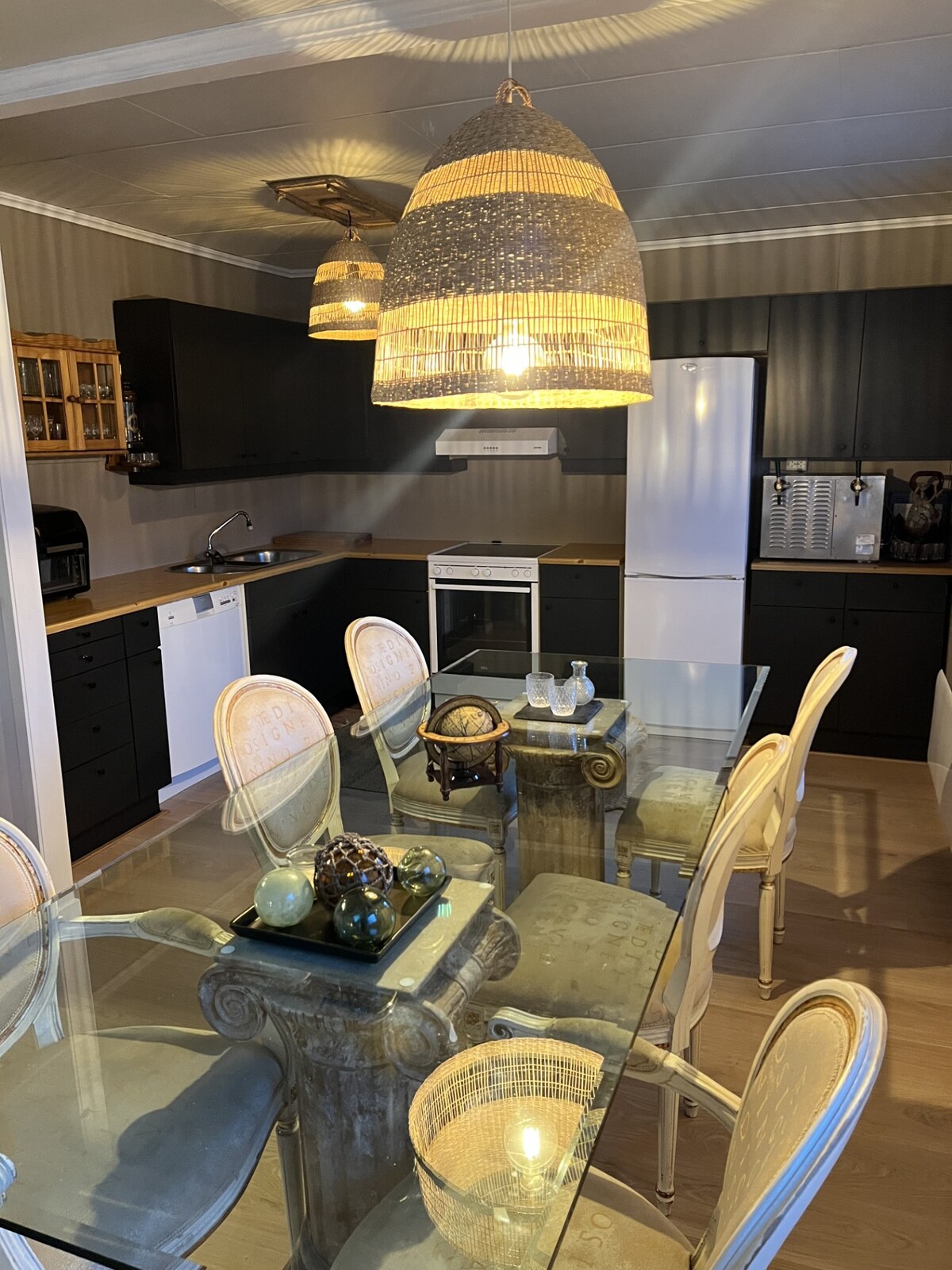 Hermosa y recién renovada casa con 4 dormitorios y dos baños. Los dormitorios tienen camas dobles y la sala de estar tiene un sillón doble para dormir. Alojamiento tranquilo, ubicación perfecta con playa privada. Increíble vista al mar. Gran terraza alrededor de la casa y una terraza en la azotea. Hitra es conocida por su fantástica pesca, buceo, caza de ciervos y muchas posibilidades para hacer senderismo y ciclismo. Comida local cerca, tienda de comestibles y restaurante. El alquiler de barcos (Angel Amfi, Grefsnesvågen) está a 3,5 km de la casa.