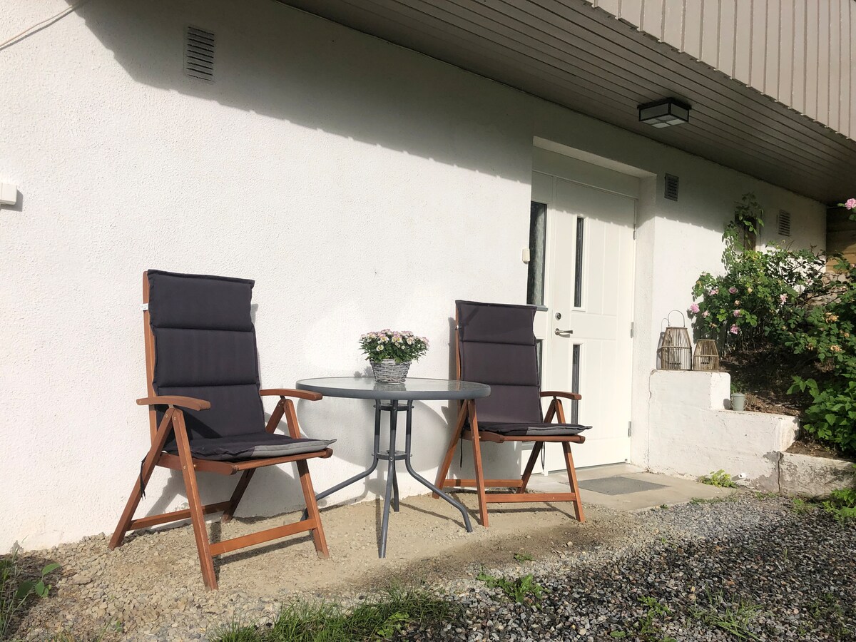 Incluido: ropa de cama, toallas, electricidad, leña para disparar y limpiar. Apartamento de piso recientemente renovado en una casa de campo. Vivimos en una de las casas y también alquilamos una cabaña y el apartamento de arriba en AIRBNB. ("Rofshus2" y "cabaña Lita en una granja soleada") Patio con mesa, sillas y barbacoa. Gran vista de Totak y las montañas. A 5 minutos en coche del centro de la ciudad con tiendas y senderos de fondo. A 10 minutos de los centros de esquí. Excelente WIFI. Grandes rutas de senderismo de verano. Cargador para auto eléctrico a 5 minutos.