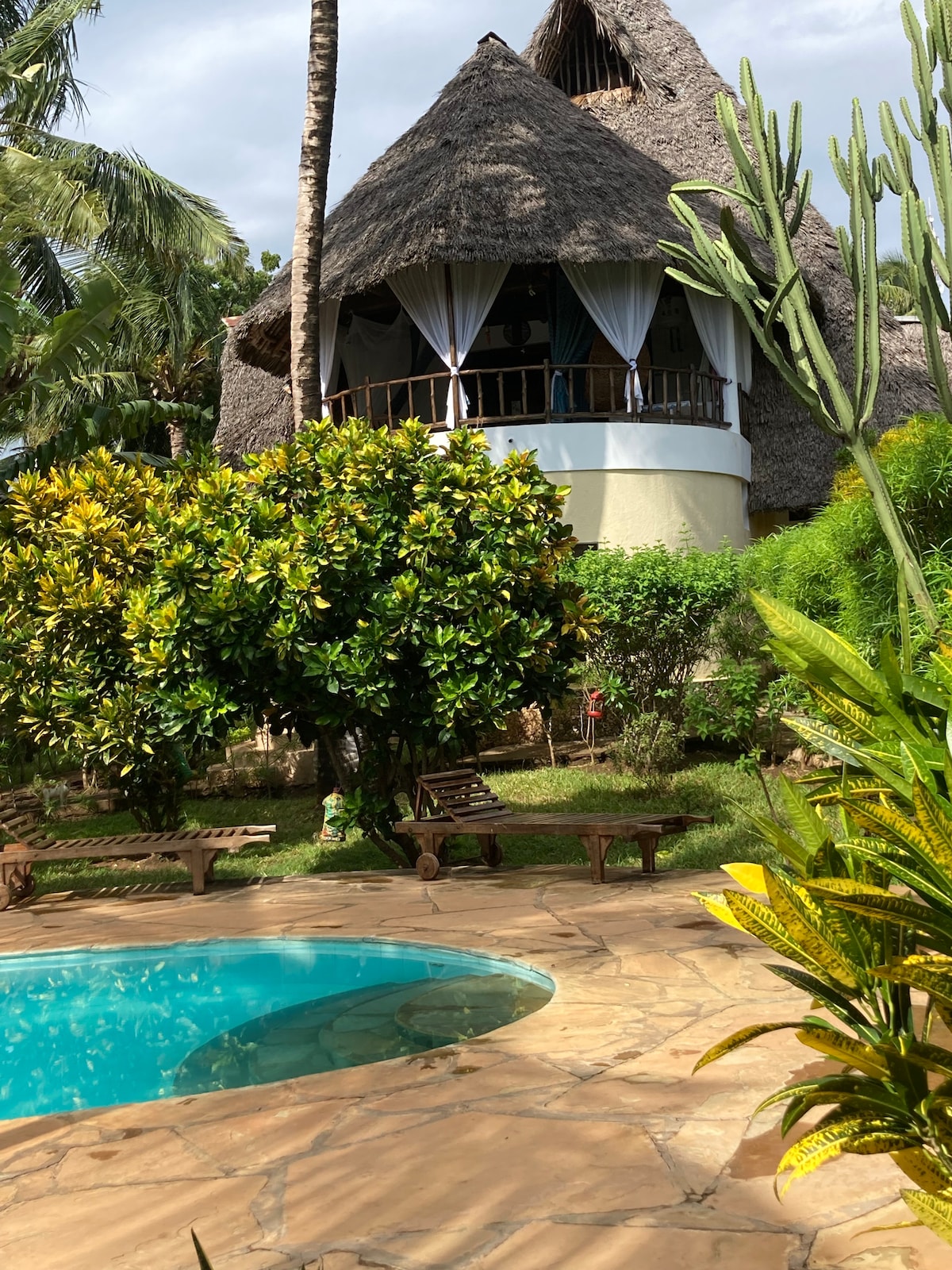 Esta es una cabaña ecológica de autoservicio familiar y un estudio de yoga en Galu con todos los servicios, incluido Internet de fibra muy rápido, piscina increíble, exuberantes jardines y a 5 minutos a pie de la playa. Las familias, las parejas y los viajeros nómadas apreciarán un entorno único en este complejo familiar con los animales de granja, dos perros amistosos, cuatro gatos y anfitriones amistosos que también son maestros de yoga. Estamos aquí para ayudarte a tener un descanso increíble del ajetreo y el bullicio de la vida cotidiana. ¡Hagamos yoga! 🙏🧘♀️
