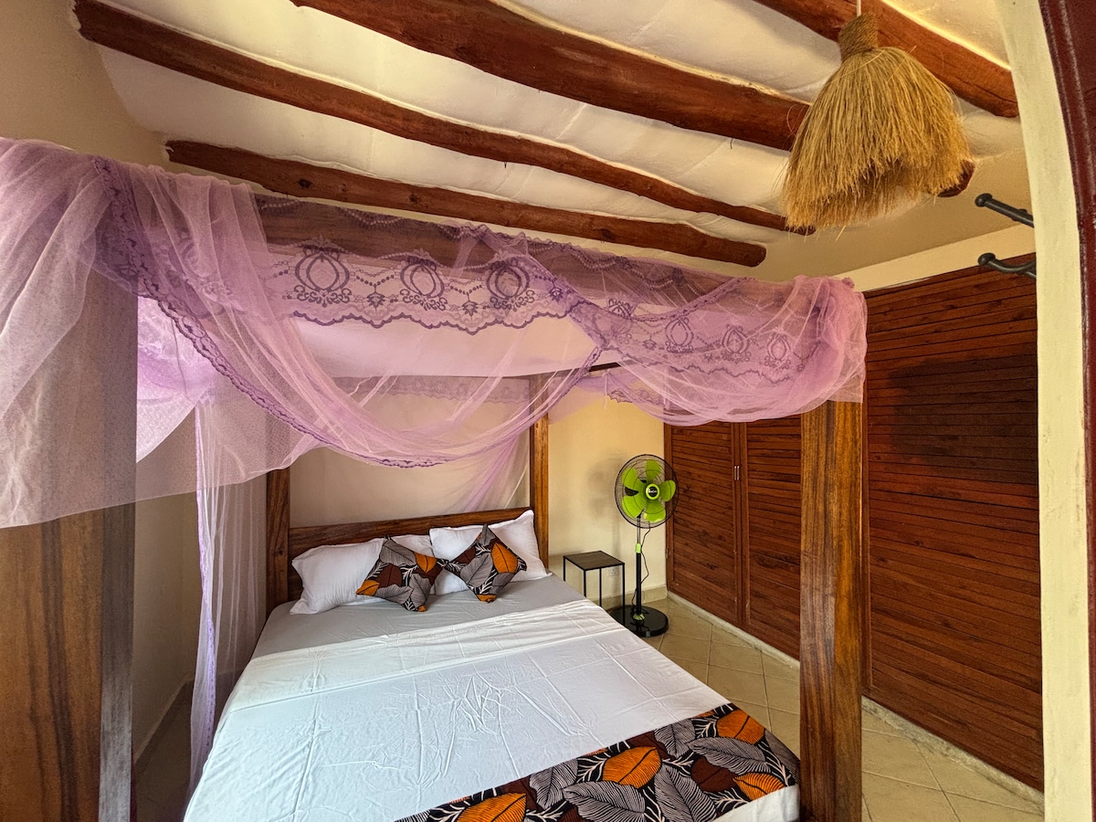 Descansa y relájate tanto dentro como fuera en una casa privada. La casa está a 15 minutos a pie y a 5 minutos en coche de la playa de Nyali. - Tiene una cama doble. - Pantalla plana y wifi gratuito. - Armario equipado con perchas y cajones + caja de planchar. - Cocina bien equipada. - Baño amplio y limpio. El estudio es una casa de huéspedes privada e independiente en la parte trasera de la propiedad. Hay 3 casas en el complejo; los huéspedes tendrán su privacidad y zona de entrada y espacio en el patio trasero.