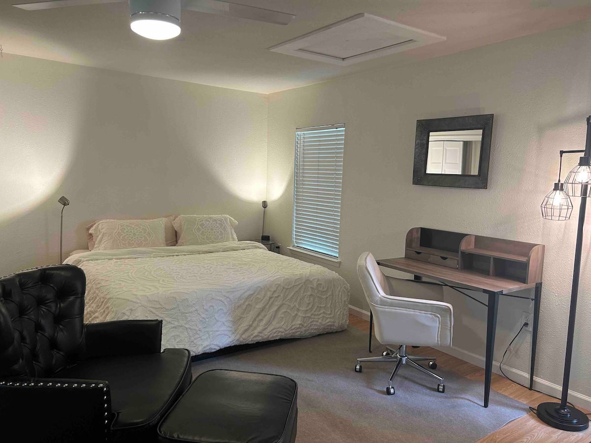 Relájate en esta artística casa trasera de un dormitorio, llena de plantas, personalidad y encanto puro de Austin. Prepara tus comidas favoritas en la cocina totalmente equipada y luego sumérgete en el sofá para disfrutar de un atracón de Netflix. El baño actualizado cuenta con una bañera con patas de ensueño, perfecta para relajarse. Sal a la terraza con tu café por la mañana o vino por la noche y sumérgete en el ambiente tranquilo. ¡Es el pequeño refugio perfecto con gran energía de Austin!