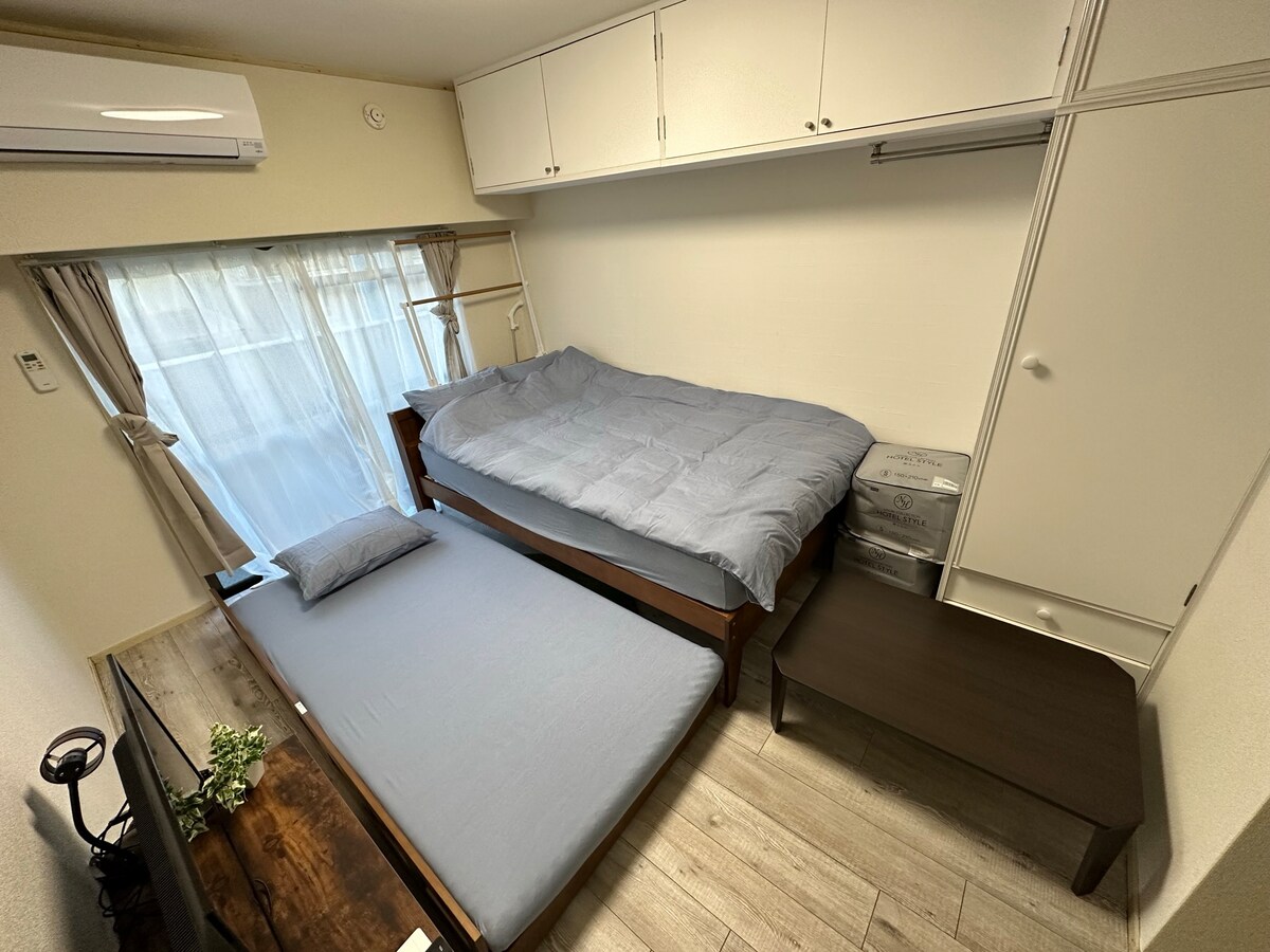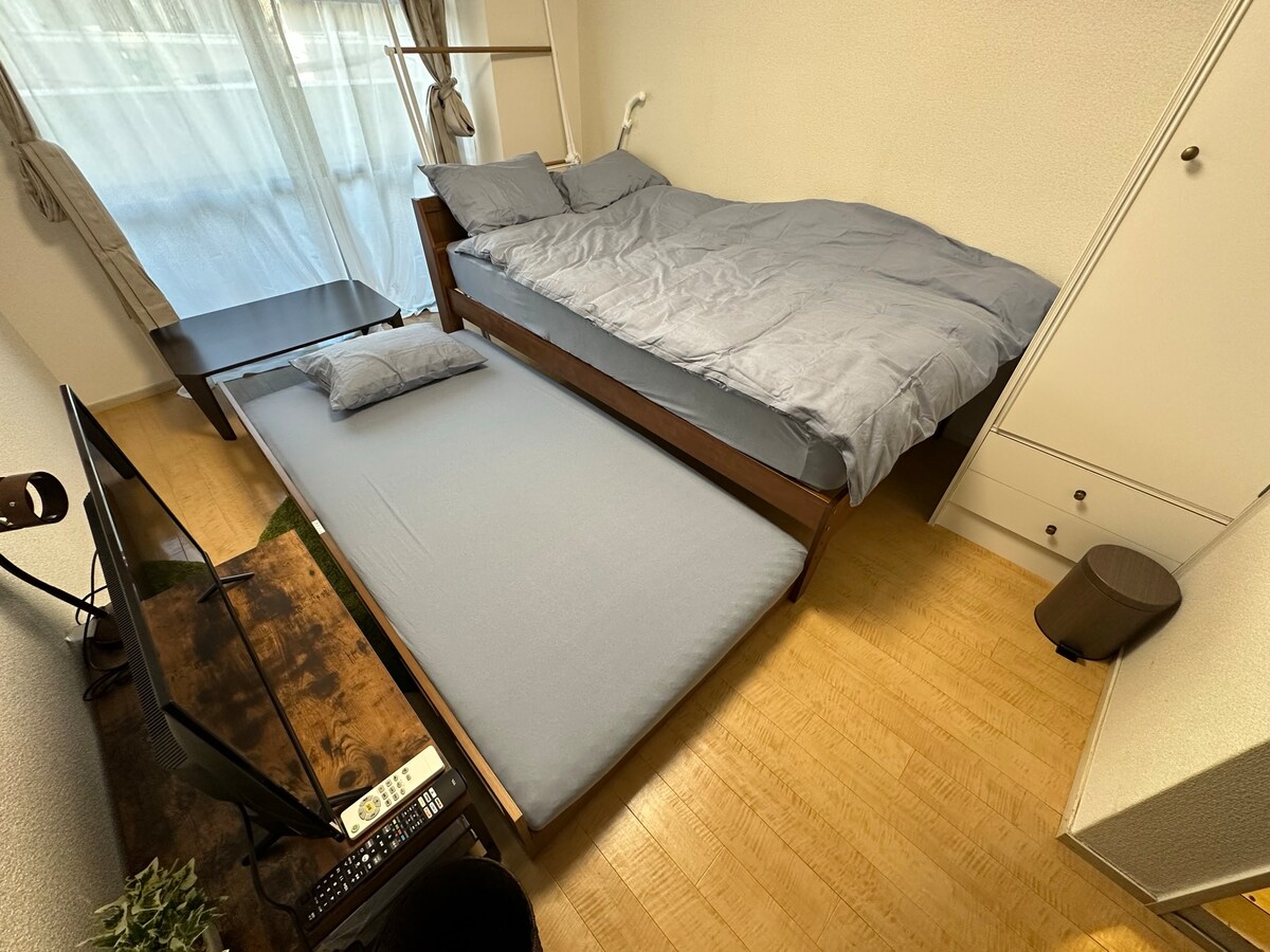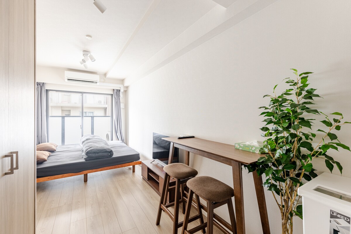 Un departamento limpio y acogedor de una habitación para una mujer, convenientemente ubicado a solo 1 minuto del metro y la parada de autobús. Hay tiendas abiertas las 24 horas cerca. La habitación incluye utensilios de cocina, una olla arrocera y una cama semi-doble Sealy para un sueño cómodo. También hay 3 lavadoras secadoras en el edificio. La estadía máxima es de 180 días al año, así que te recomendamos que reserves con anticipación. Esto se reinicia cada abril. Precios actualizados para mantener la calidad: desde 5500 JPY por noche en 2026, con posibles aumentos leves debido a la inflación de Japón.