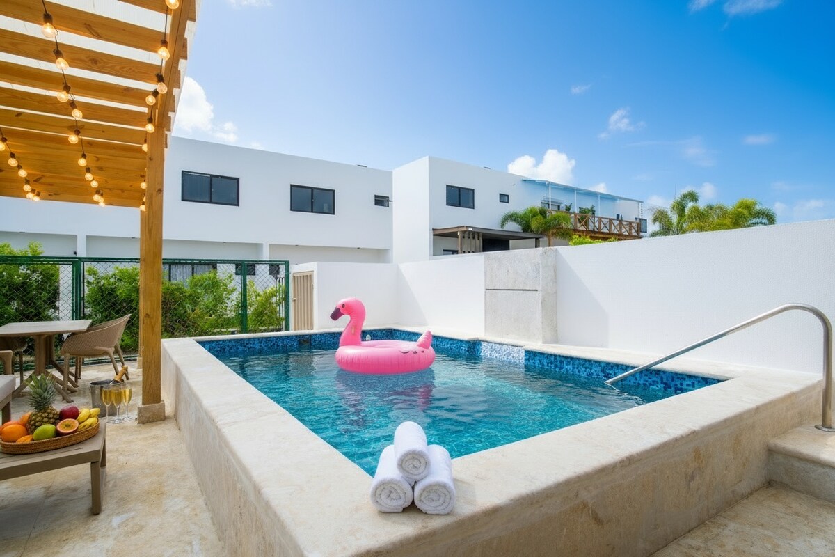Espectacular nuevo Apartamento de lujo con piscina privada en la terraza, Justo a unos pasos de una de las principales playas de Bavaro. Un nuevo concepto de apartamentos en Punta Cana que te proporcionará confort, privacidad y seguridad para pasar tus vacaciones. Habitaciones amplias, cocina totalmente equipada, muebles de diseño, wifi de alta velocidad, check in online con la ultima tecnología. Sin duda una nueva experiencia para vivir Punta Cana de una forma diferente.