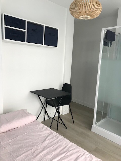 habitación fresco y tranquilo cama de 160x200 (ropa de cama de excelencia) cuarto de baño e inodoro privados separados acceso directo a la terraza con pequeña zona de relajación compartida. Posibilidad de preparar su desayuno en mi terraza ( cafetera, tostadora ,hervidor de agua y microondas y nevera a su disposición). se proporcionan sábanas y toallas WiFi y limpieza incluidas SE ACEPTA PERRO