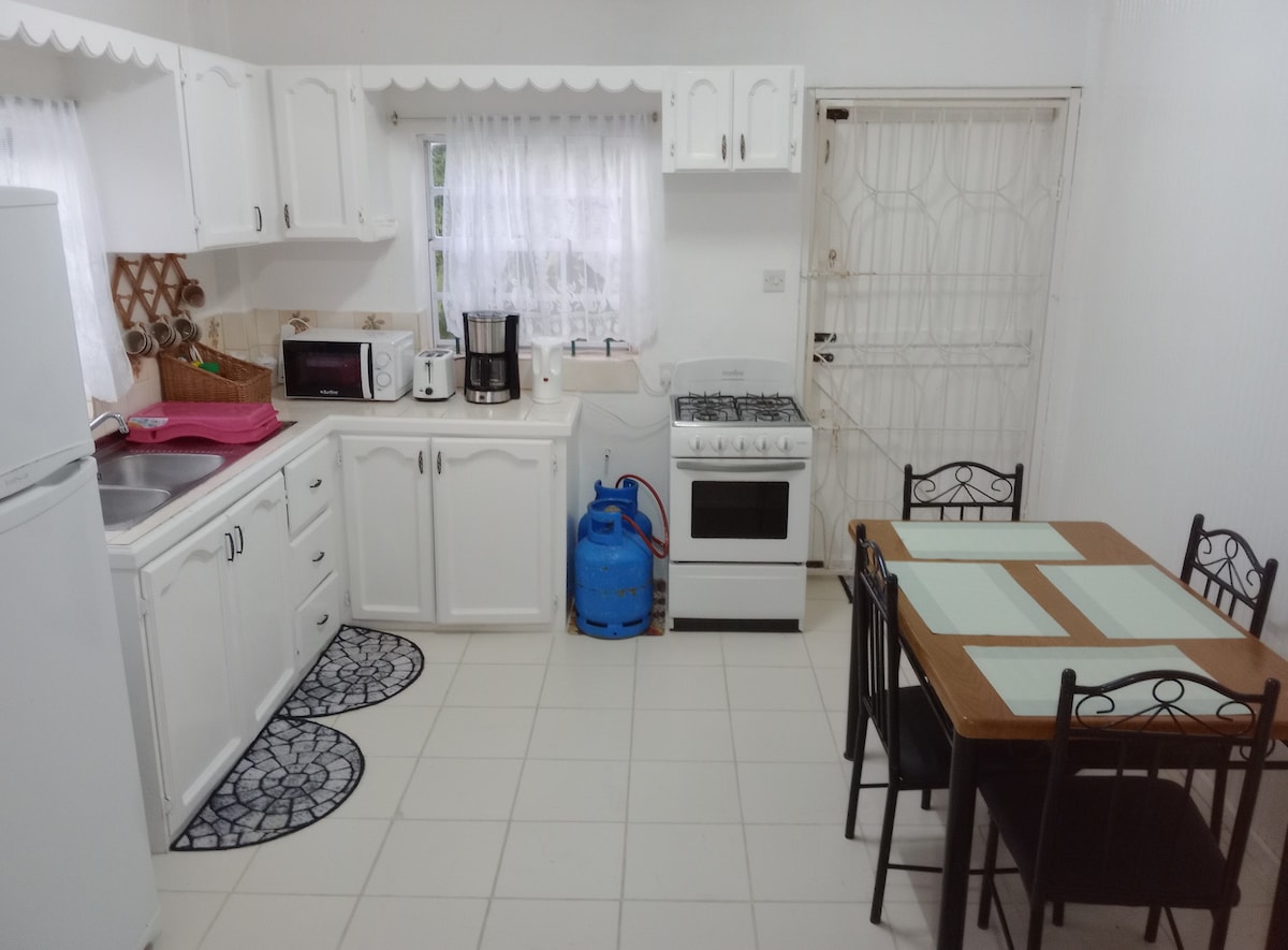 Escápate, relájate y rejuvenece en nuestra moderna suite de lujo de 1 dormitorio ubicada a solo 20 minutos de Rodney Bay. Nuestra cama tamaño king te ofrece un amplio espacio para disfrutar de una cómoda noche de descanso. Relájate en nuestra habitación totalmente climatizada y disfruta de tus programas de televisión favoritos en la comodidad de tu cama con acceso a Netflix y televisión por cable también en la sala de estar. Prepara tus platos favoritos en nuestra cocina moderna totalmente equipada. Siéntete seguro con nuestra propiedad totalmente vallada y cámaras de seguridad exteriores, ¡así que reserva ahora!